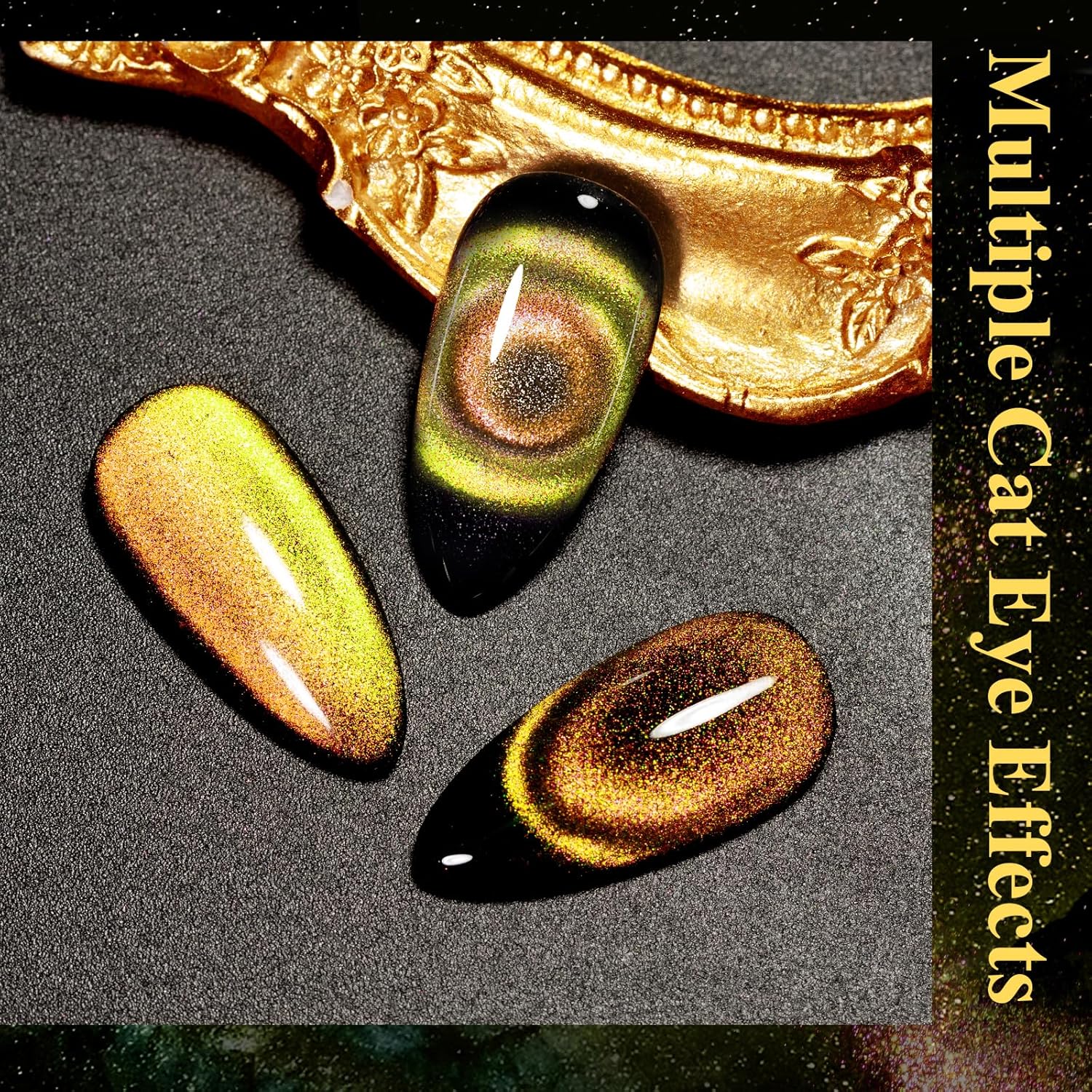 - Absolutely Gorgeous Effect: The gel nail polish is not only cat eye (black hole) effect but also chameleon color! The color shift and dance under the different angle of lights, creating a mesmerizing and ethereal effect. Explore the creative side of nail art with this gel nail polish set.