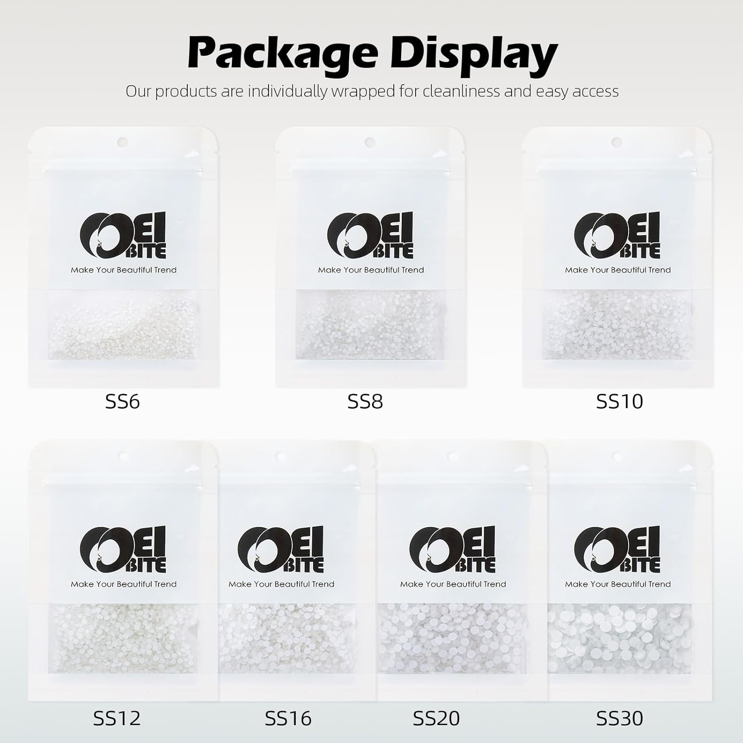 - Product Packaging: Bags packaging SS12 2.9~3.0 MM - 1440 Pcs Neon White flatback rhinestones