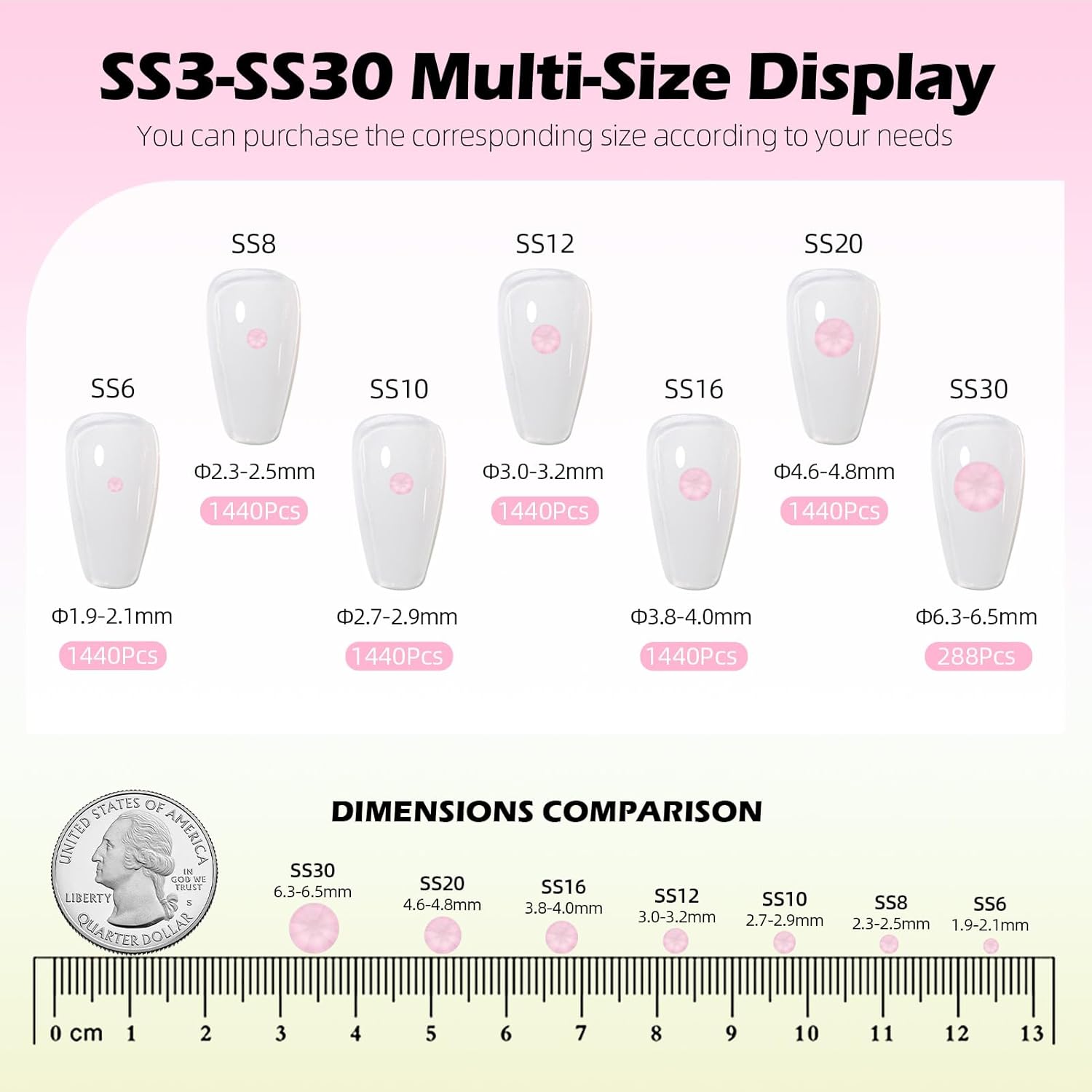 - Material: Glass/Artificial Crystal, Flat Back Round, High-precision cross-section, multi-sided cutting, high brightness, high Sparkly