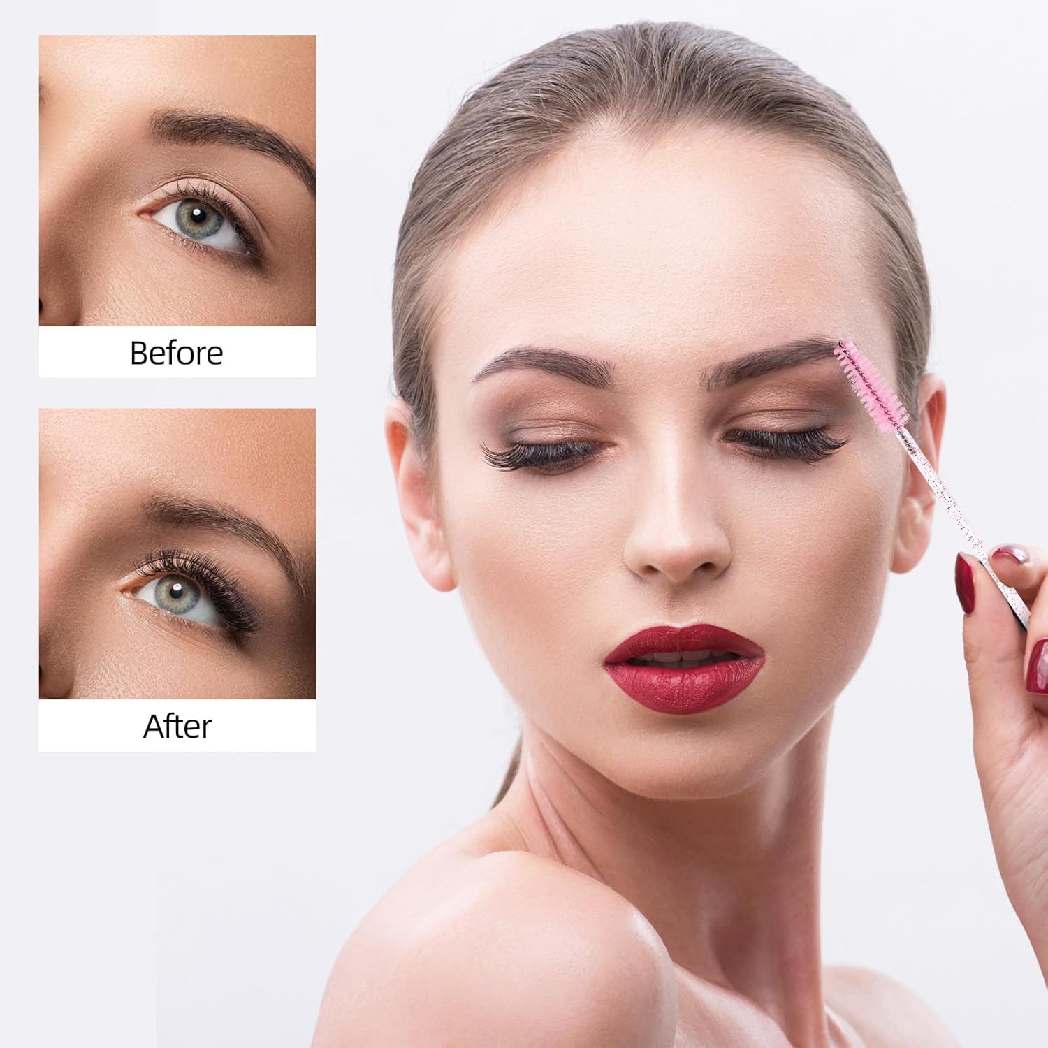 Tbestmax 800 Disposable Mascara Wands, Spoolies Brush for Eyelash Extensions, Crystal Pink Spooly Eyelash Eyebrow Brushes Lash Wand Applicator Makeup Kits