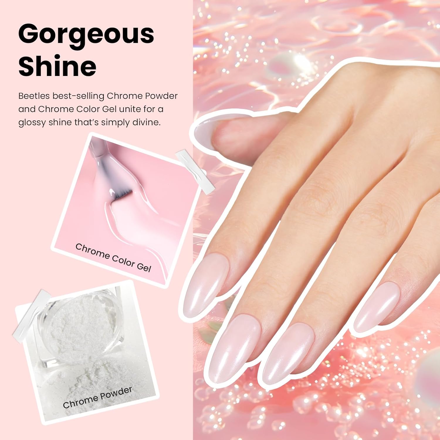 Beetles Pearl Chrome Nail Powder Gel Nail Polish Set, Glazed Donut Mirror Effect with Silicone Nail Brush, Liquid Peel Off Latex Tape Top Coat&Base Coat