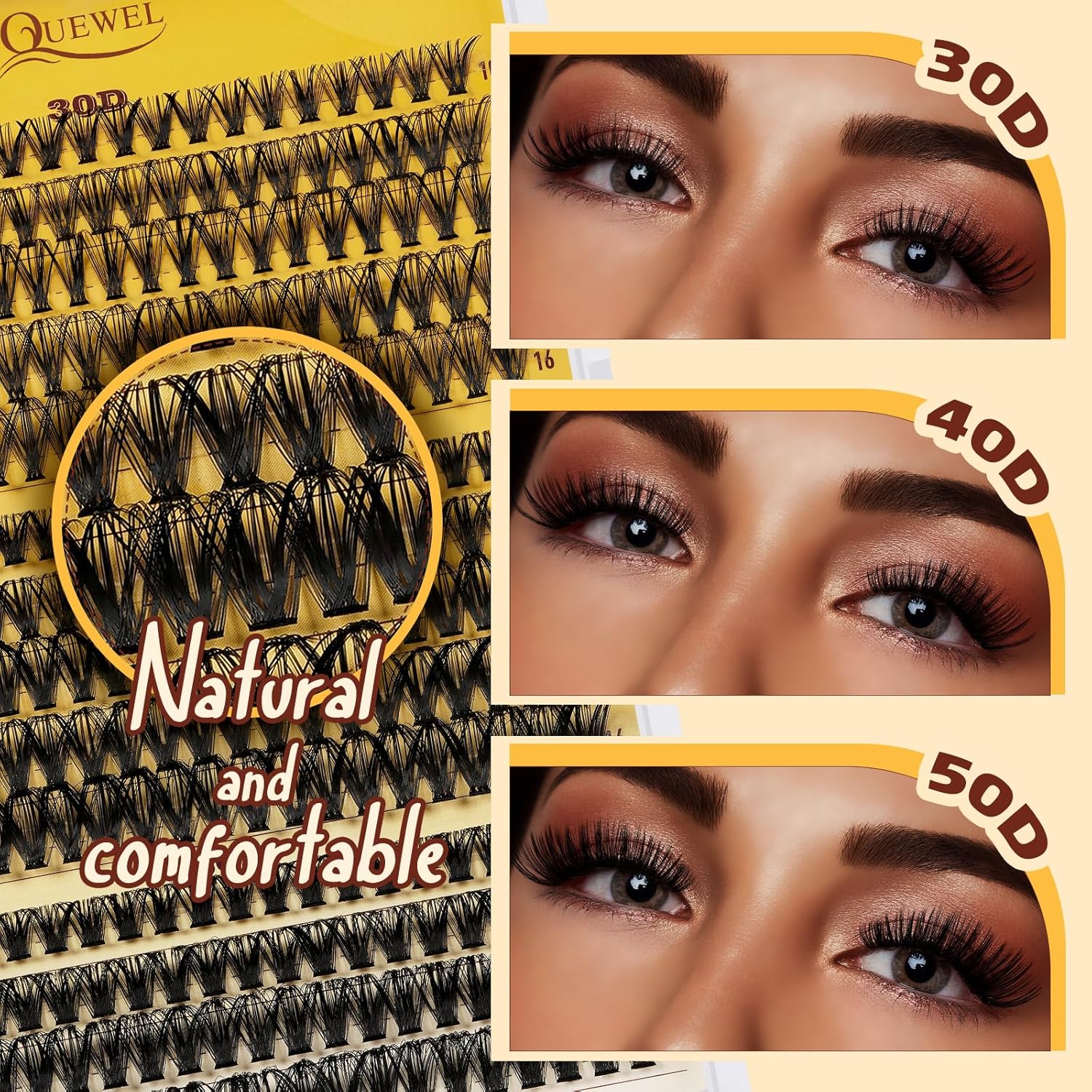 - DIY Lash Extension Kit: QUEWEL lash clusters kit includes 280pcs 30D+40D+50D DIY cluster eyelash extension, 1*10ml lash bond and seal, and 1* lash cluster tweezers. This lash clusters kit can meet your needs and make your eyes more attractive, whether it's for everyday makeup or special occasions, this three-piece lash extension kit will make you shine outstandingly. Come and try