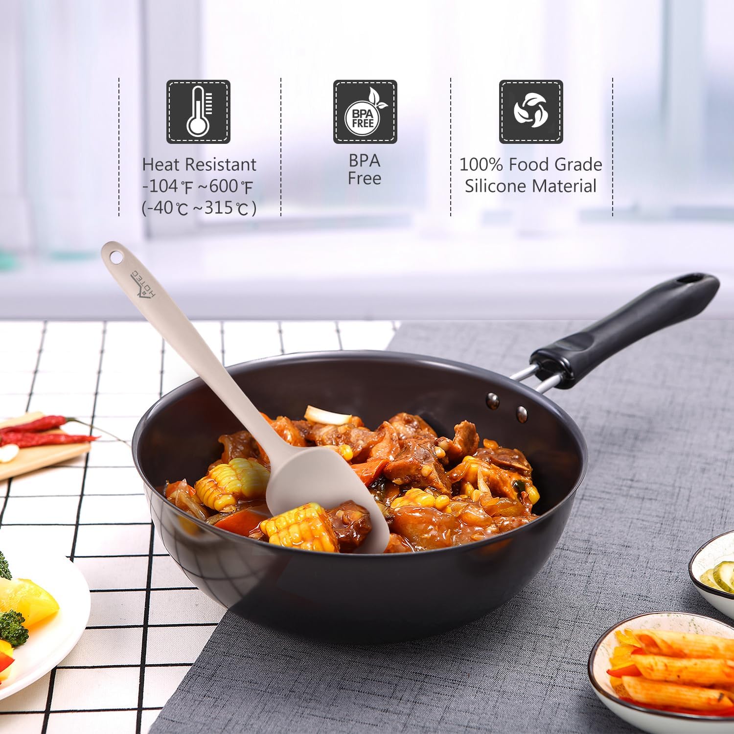 • [ SEAMLESS ONE PIECE DESIGN] :Seamless one piece design ,easy to clean ,and Non-Stick ,Soft Handle for better grip ,Noiseless & Harmless ,Perfect for baking ,cooking and mixing etc.,