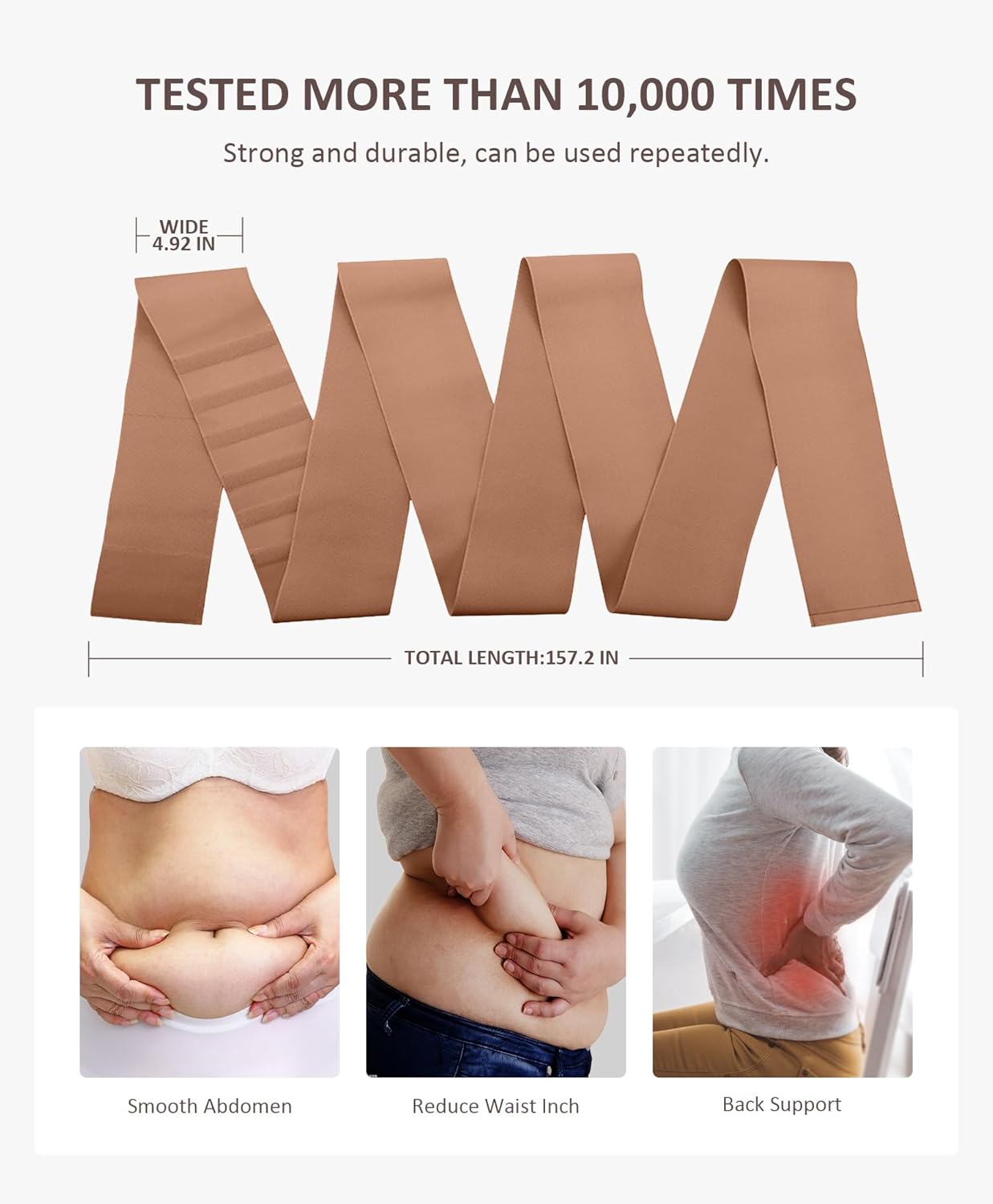 • One Size Fits All: Our waist wrap is designed to accommodate all body types with its one-size-fits-for all size within 23.5 IN-47.5 IN waistline. Measuring 157.2 IN in length and 4.92 IN in width, this bandage wrap offers versatility in snatching your waist, allowing you to adjust the tightness to your preference to your preference for ultimate comfort. Warm tips-Thinner women need to wrap more circles, will appear thick, full-figured women can wrap fewer laps and also have tummy coutrol.
