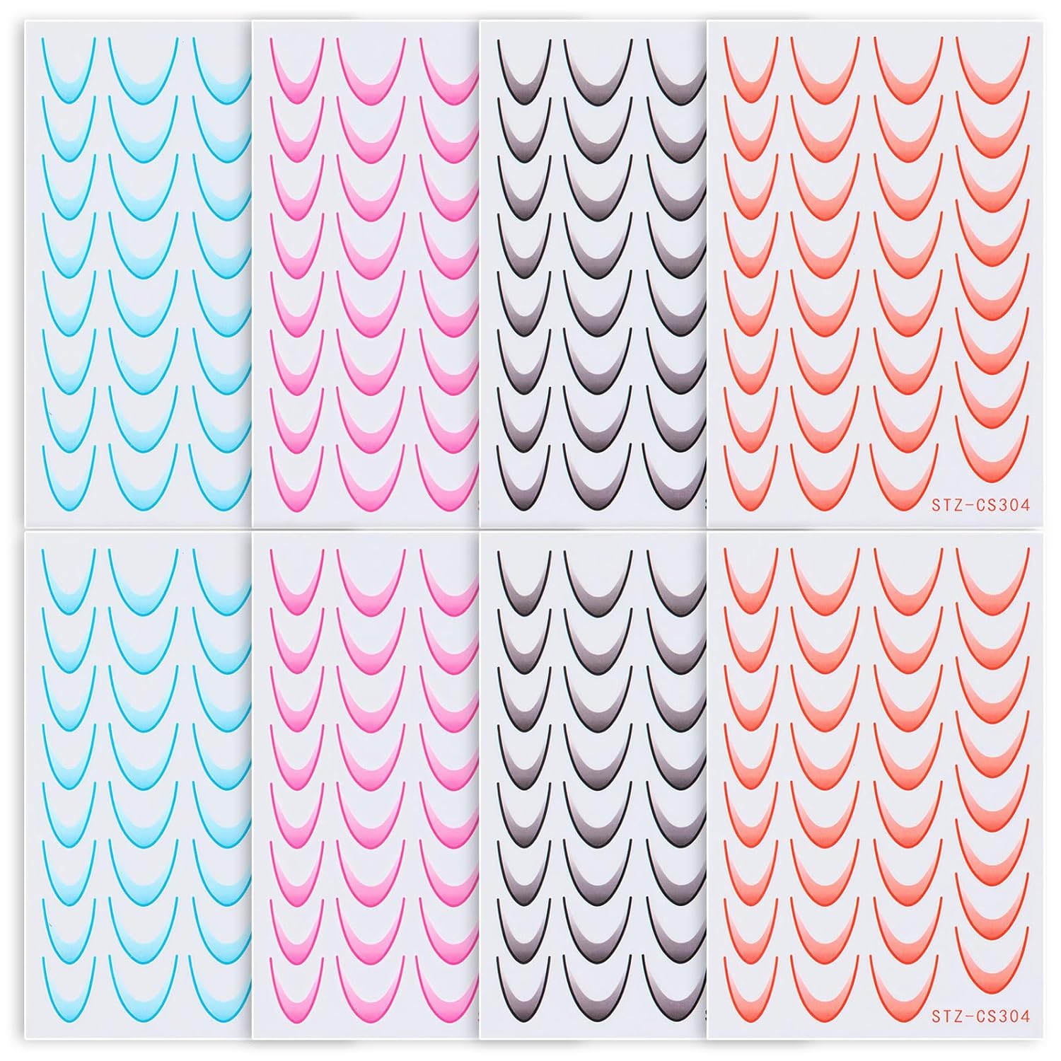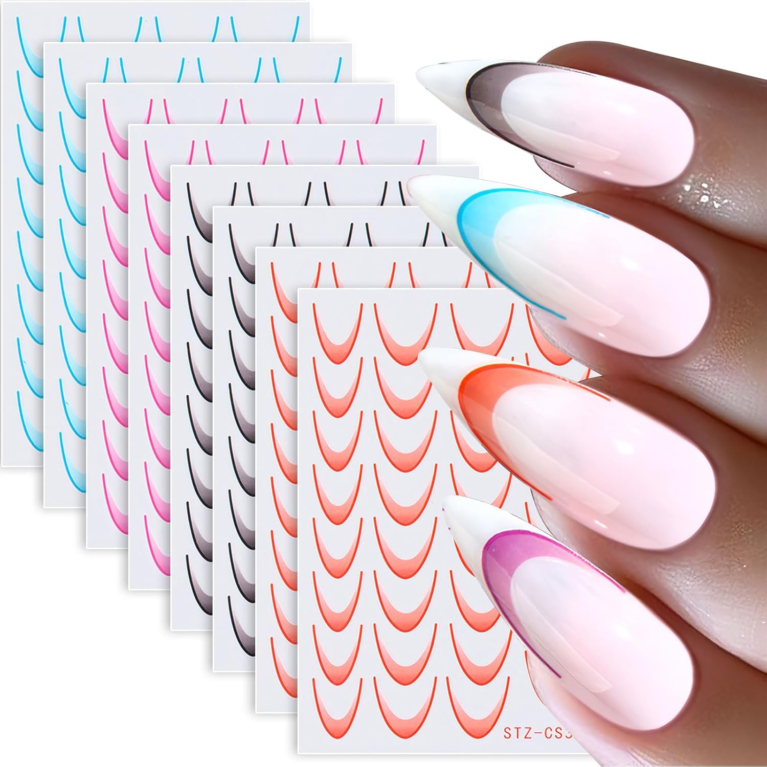 380 Pcs French Tips Nail Stickers, 8 Sheets Self-Adhesive Gradient Orange Black Rose Blue French Tips for Women Girls, 2025 Spring French Tip Nail Stickers Trendy Designs