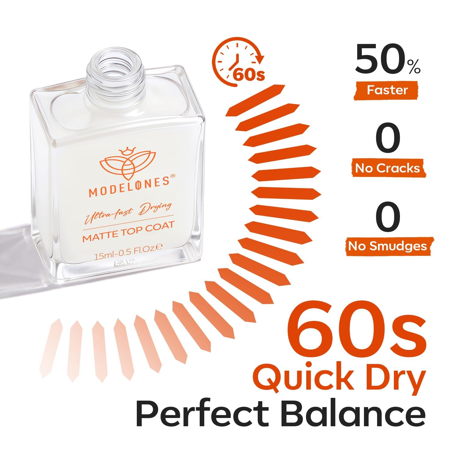- Long Lasting: Keep your nails looking fresh and vibrant for 7 days with our upgraded lock color and fade prevention technology. modelones matte top coat for nail polish seals your color and creates a matte effect finish that resists chips and fading