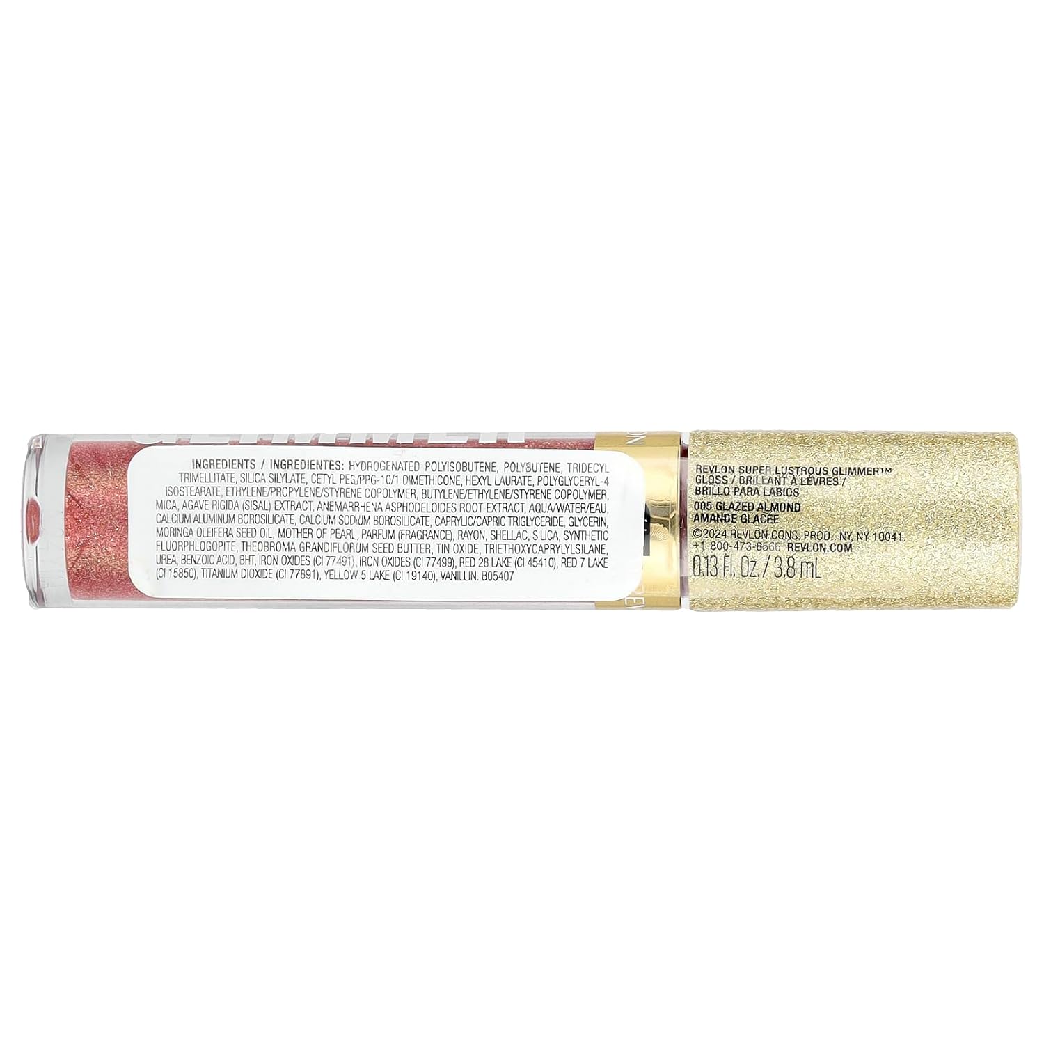 REVLON Super Lustrous Glimmer Gloss, Non-Sticky Lip Gloss, High-Shine Finish, Plant-Based Glitter, 005 Glazed Almond, 0.13 fl oz