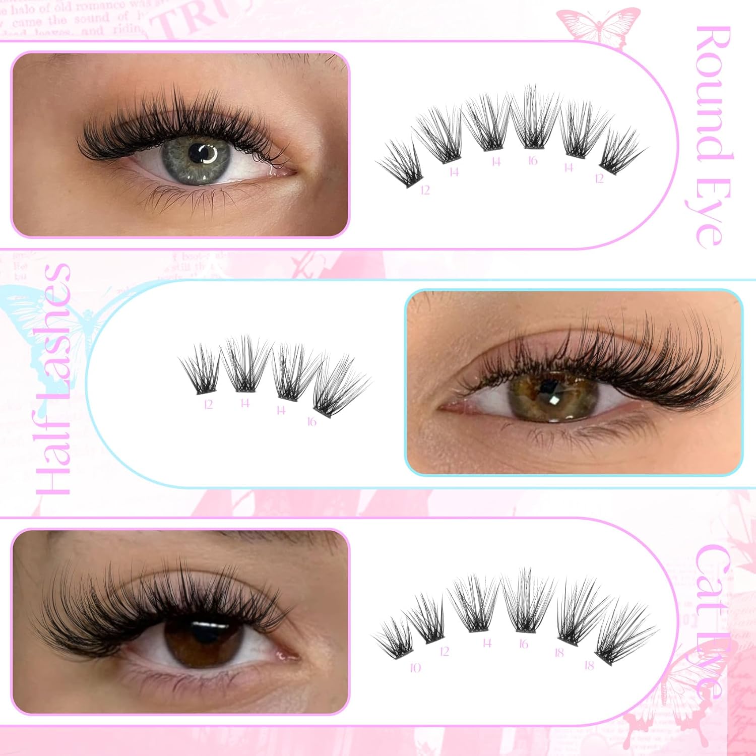• Fluffy natural lash clusters kit - The new technique gives each wispy eyelash clusters a fluffy effect. Each lash clusters has 50 individual lashes, adding wispy voluminous volume, giving you a perfect, glamorous, enchanting look.