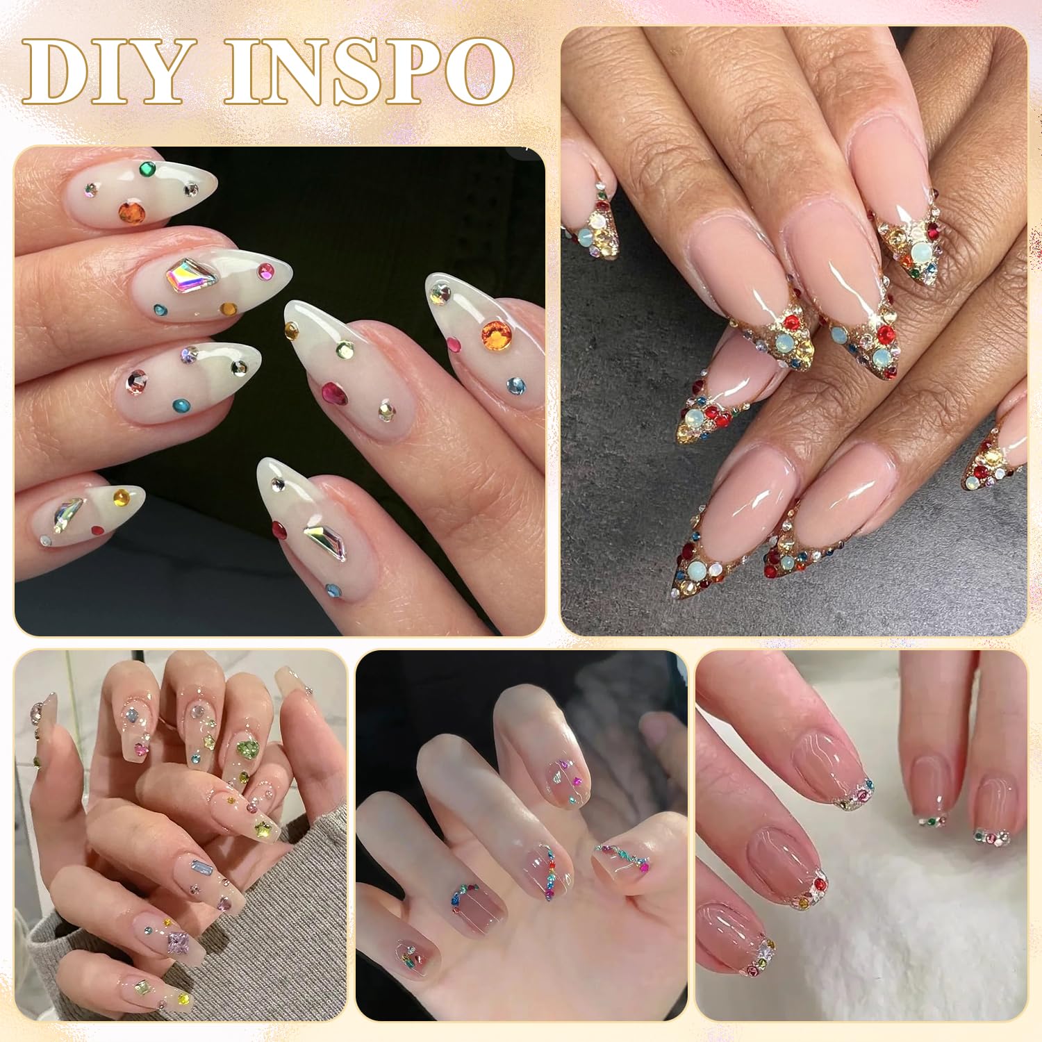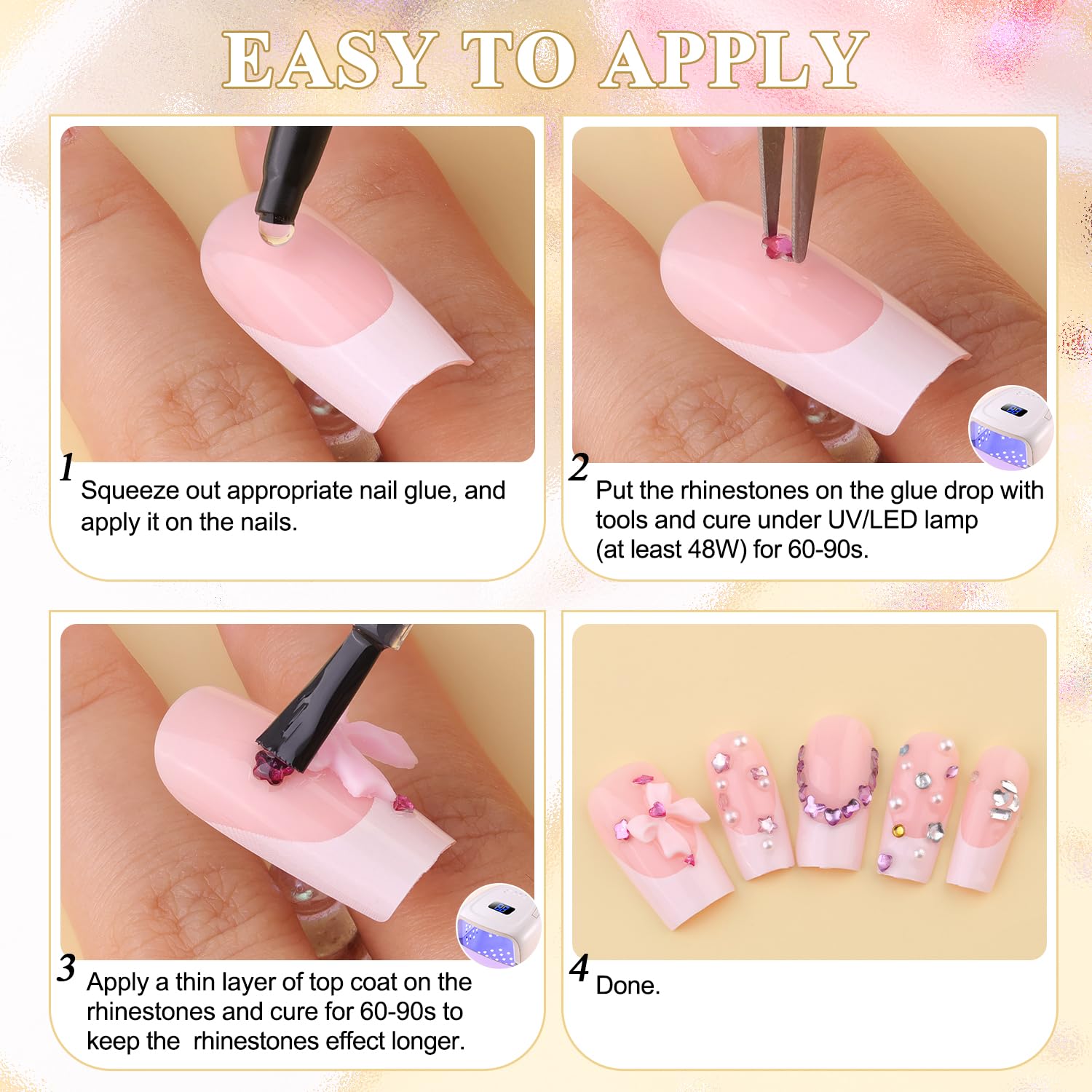 - Package Includes -- One package includes 3000 pcs multi shapes(1.2-3 mm) and 1700 pcs round(1.5-2.5 mm) mini nail gems, one tweezer and one pick-up pencil. The nail kit with sufficient quantity of rhinestones can easily meet your nail design needs at home