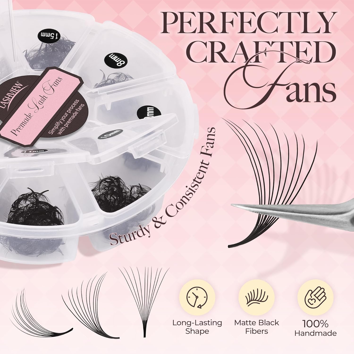 LASHVIEW 600 Premade Volume Eyelash Extensions Mixed Tray - D Curl, Pointed, Loose Fans (10D-0.07D, 8-15mm)