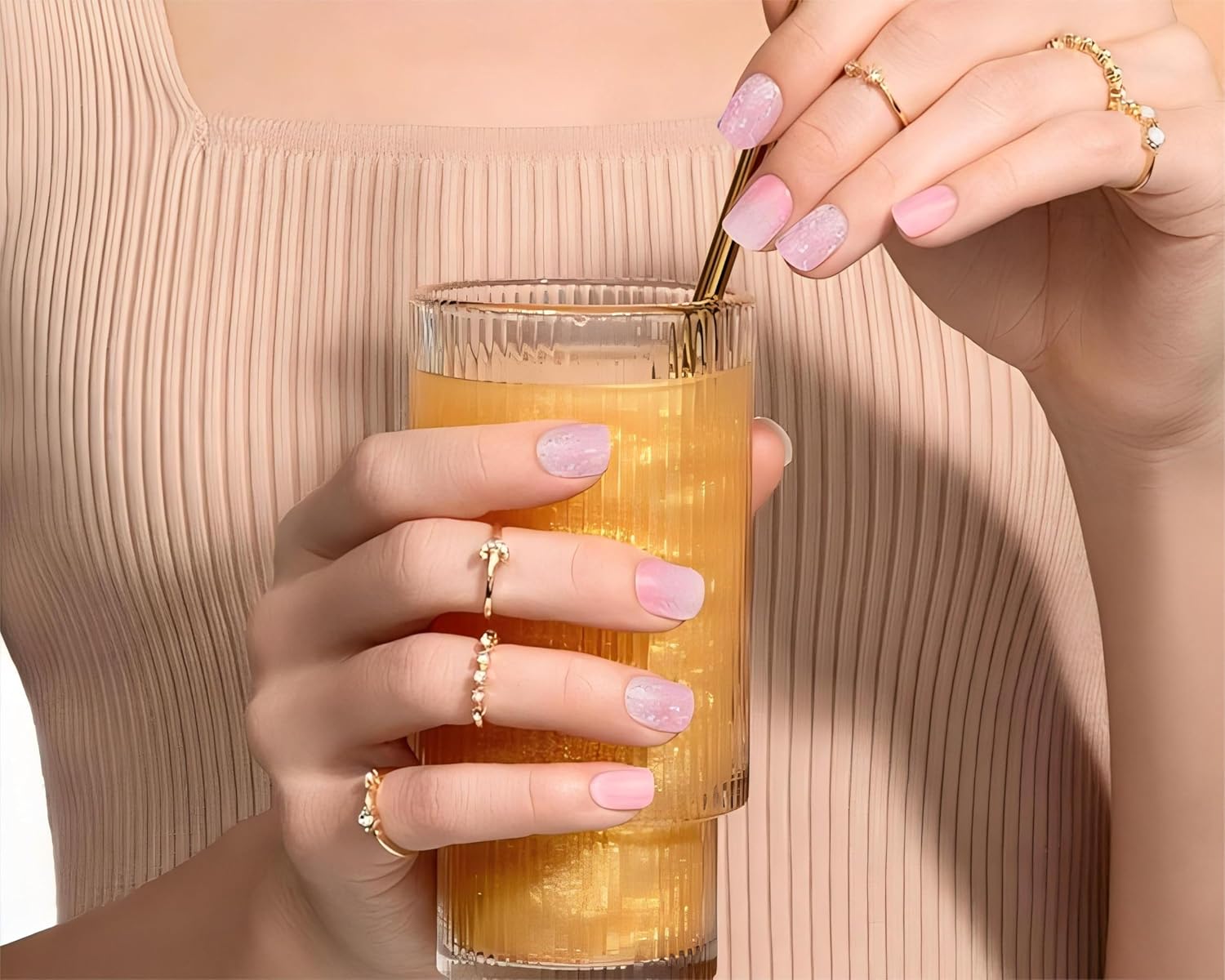 Gloss Nail Strips|Uv Free|22 Pcs,Gel Nail Stickers|Long Lasting Two Weeks and Easy to Apply&Remove|Pink Sequins 1