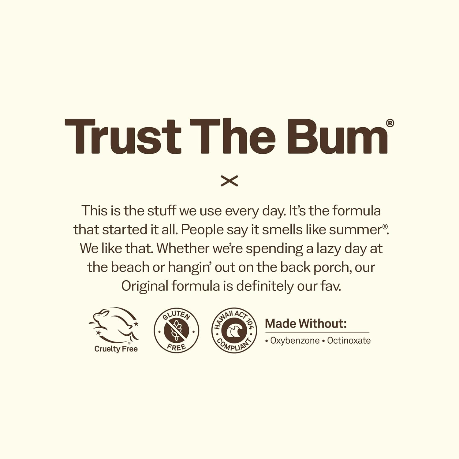 - TRUST THE BUM. What does that mean? It means trust us, the ones who live on the beach and need products that work on the most intense days in the sun. The simple truth is, when you make products to protect the ones you love, you make βem better.