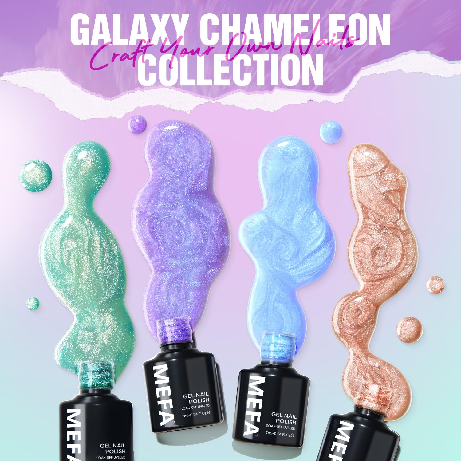 MEFA 12 Colors Gel Nail Polish Set Chameleon Gel Polish Kit with Purple Blue Green Soak Off Nude Brown Heart Glow Collection Manicure Gifts for Women Girl DIY Salon Home