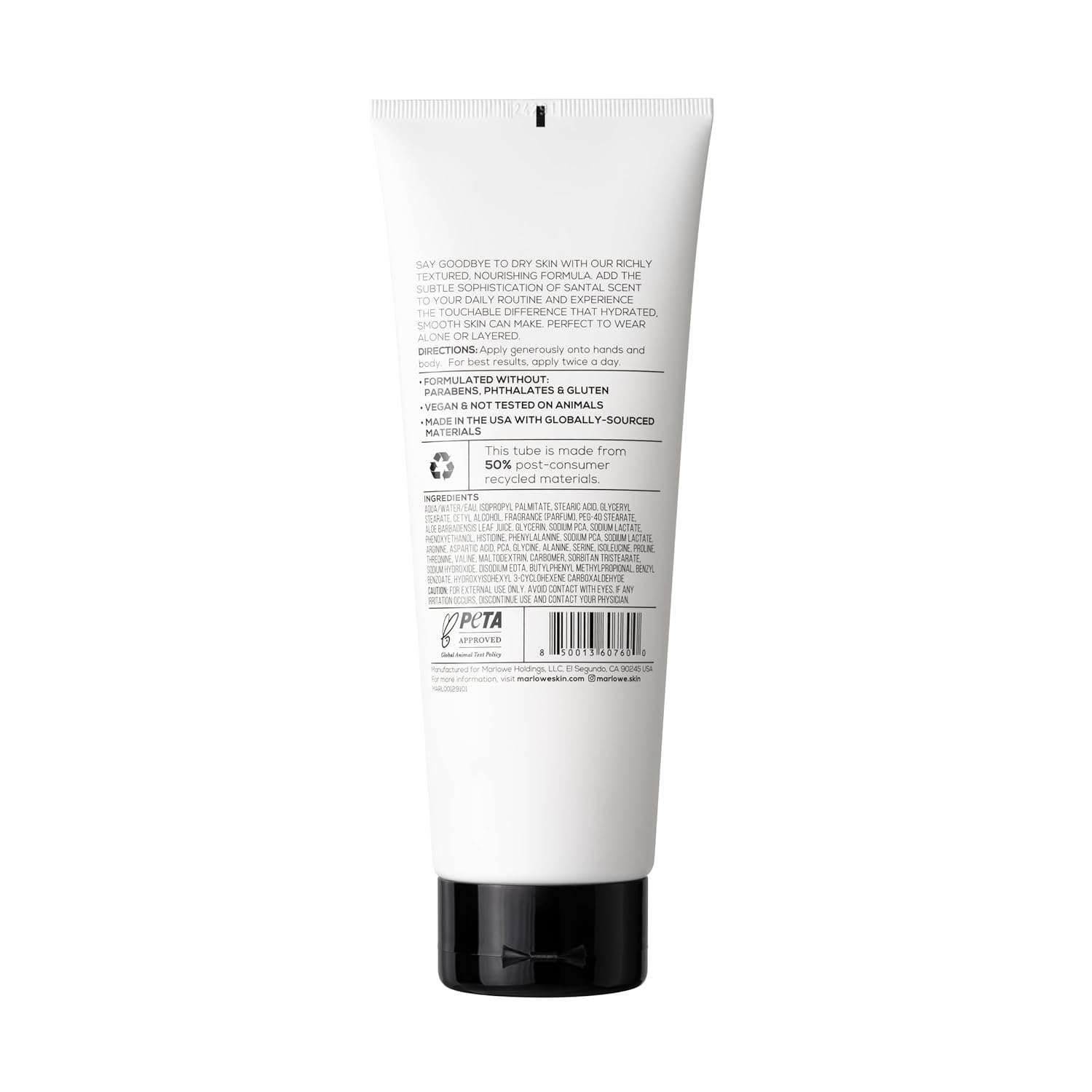 - Experience MARLOWE.: Our men's body lotion is crafted with a unique combination of natural ingredients like moisturizing Aloe Vera extracts and amino acids. For softer skin, apply the lotion generously onto hands & body twice a day