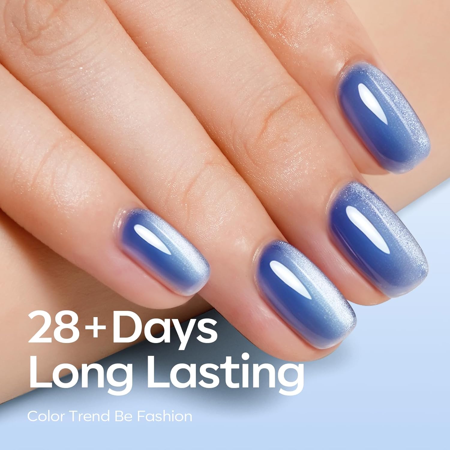 - Include: 6 Colors of icy Blue Green Glitter Cat Eye Gel Nail Polish (7ml/0.24 fl. oz each) + 1 Double-Head Magnetic Stick for various cat eye designs. Practice makes perfect in cat eye gel !