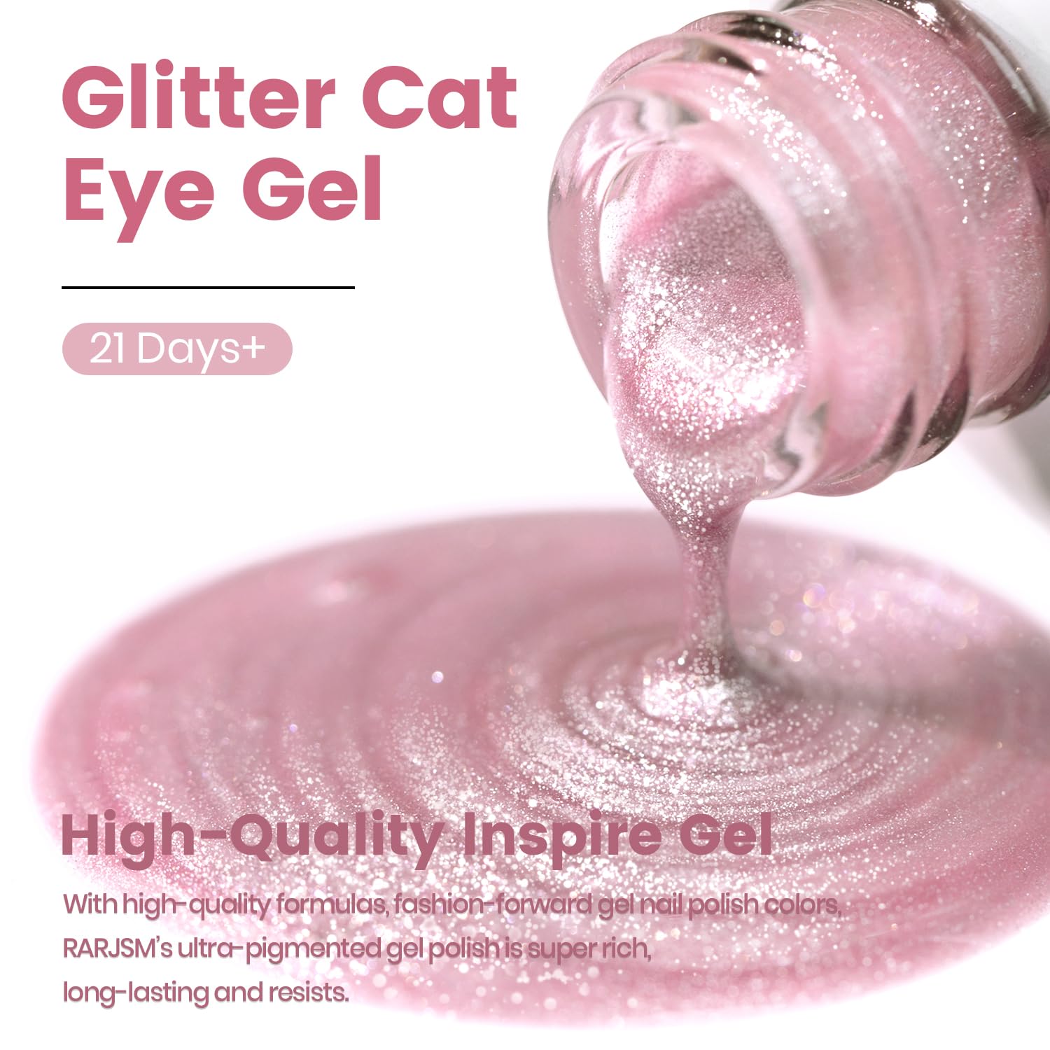 - DIAMOND GLITTER GEL POLISH:Package includes 1 bottle 15ml nude pink silver color diamond cat eye glitter gel nail polish and 1 piece magnetic stick which suit for all skintone. Diamond cat eye gel polish have a beautiful refection, look like little diamonds on your nails. This cat eye gel polish is easy to apply and soak off