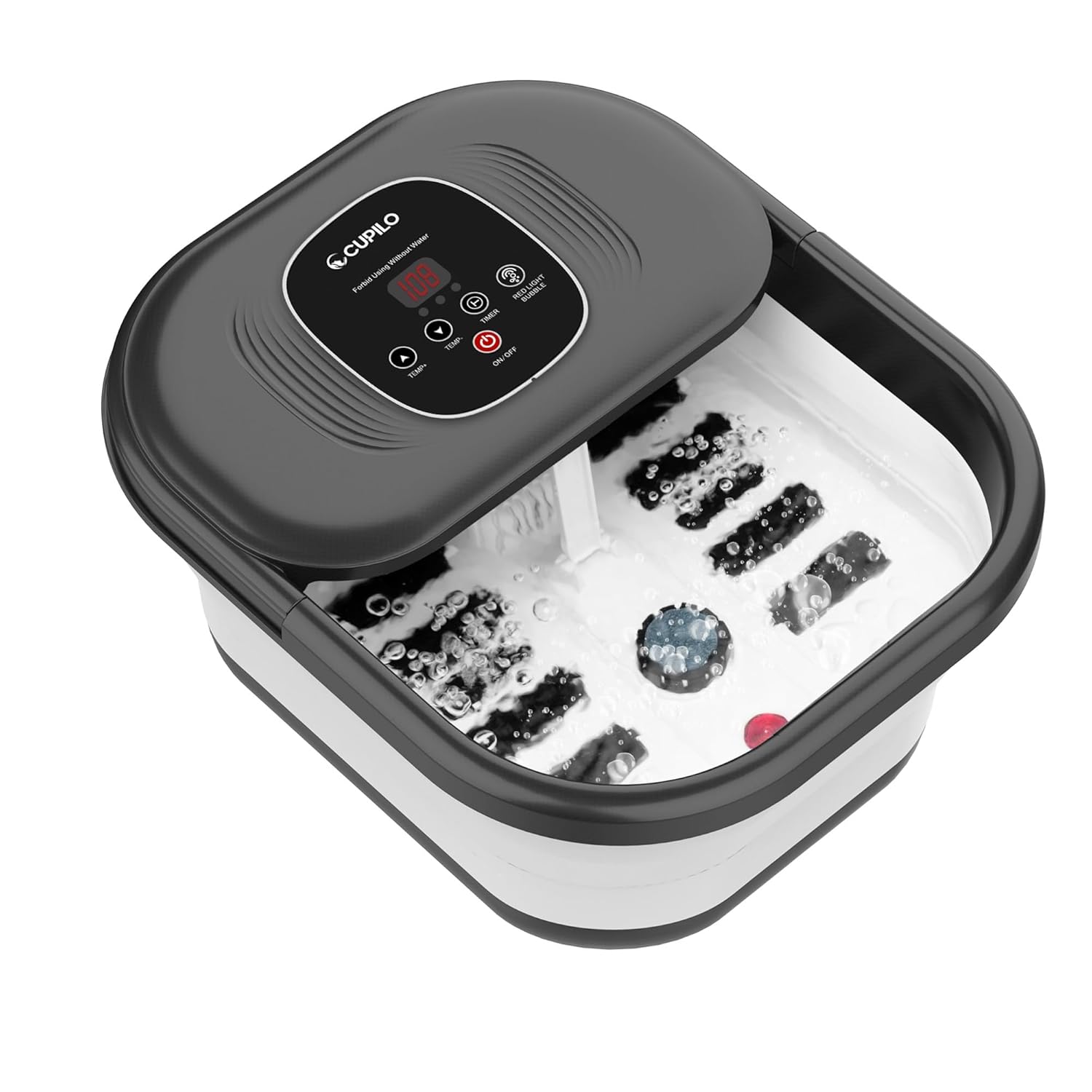 Foot Spa Bath Massager, Collapsible Foot Soaking Tub with Heat, Bubbles, Red Light, Pumice Stone, and Shiatsu Rollers for Relaxation, Gift for Foot Care