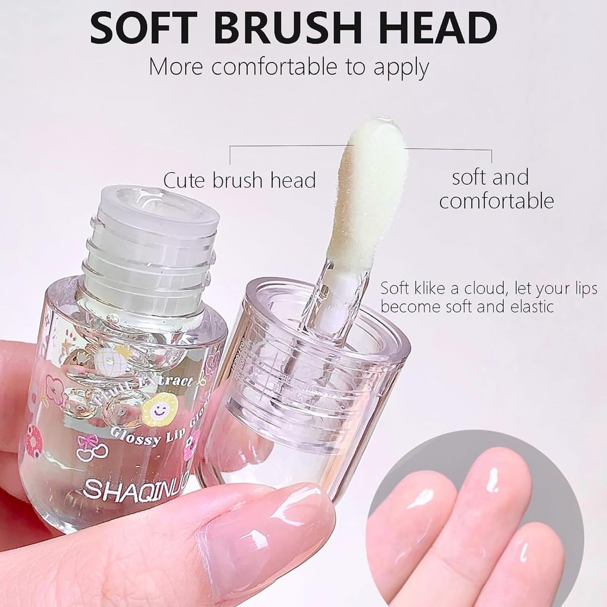 4Pcs Fruit Flavored Lip Gloss Oil Set,Big Brush Head Lip Oil,Cute Lip Hydrating Nourishing Lip Gloss, Jelly Glossy Finish Lip Glow Oil,for Kids and Teens, Kid Friendly, Party Gift, Non-toxic