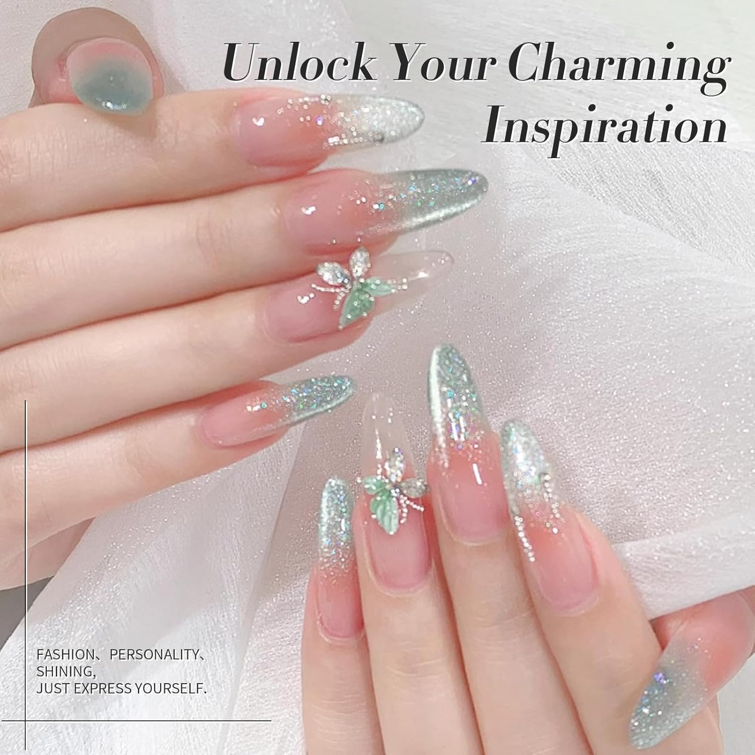 Born Pretty Green Cat Magnetic Eye Gel Nail Polish Shimmer Glitter Flakes Holographic Aurora Mint Green Magnetic Gel Polish Nail Art Manicure DIY at Home 15ML