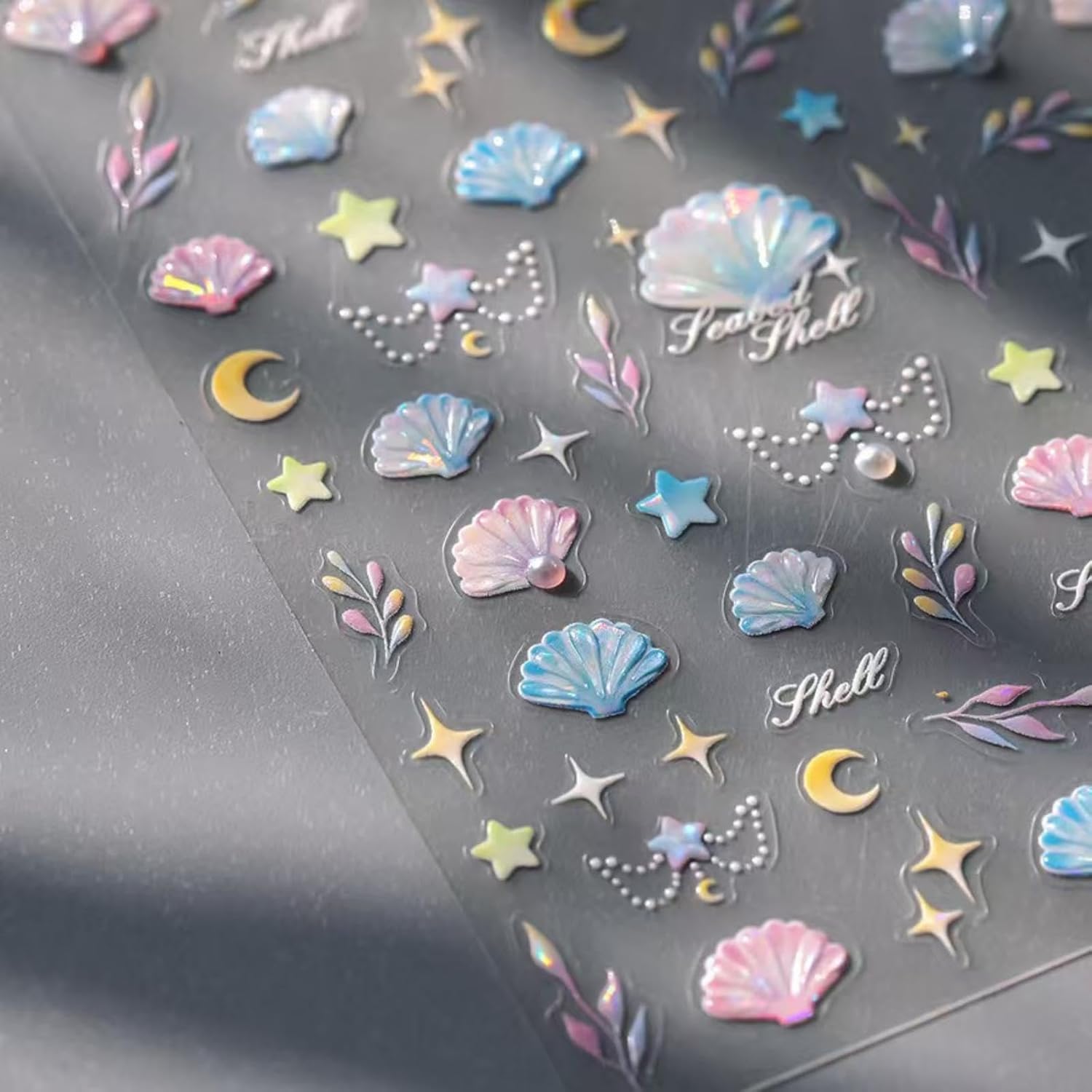 - Fashion Nail Designs:There sea shells nail decals,large number of different color for you to use and replace in daily life, nail decals are full of sensuality and elegance,Various charming patterns bring you a different mood