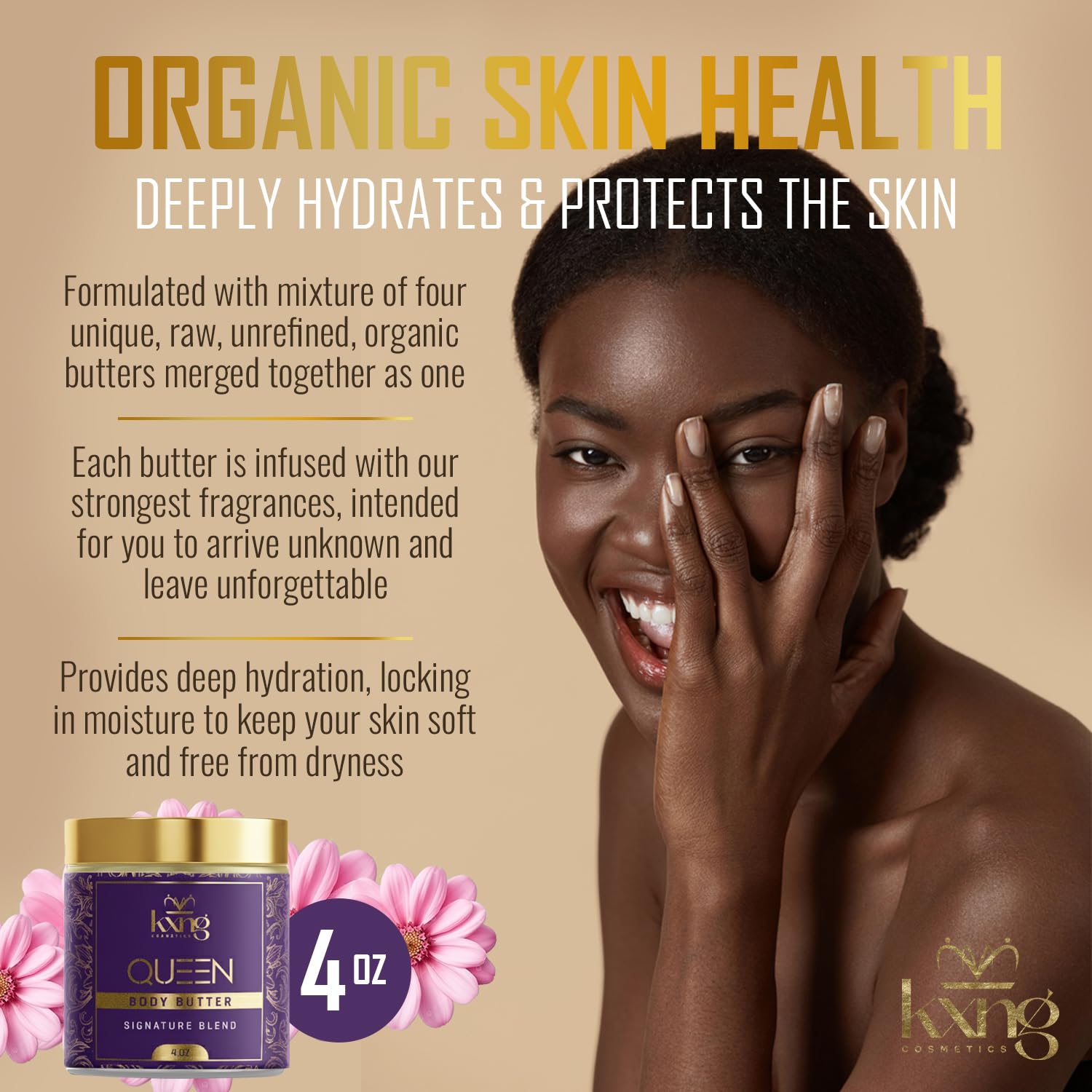 KXNG Cosmetics, Body Butter, Organic Skin Care for Men and Women, Body Moisturizer Lotions and Creams, Raw Shea Butter, Cocoa Butter, Mango, Coconut Oil, Hand, Foot, All Skin Types (Queen)