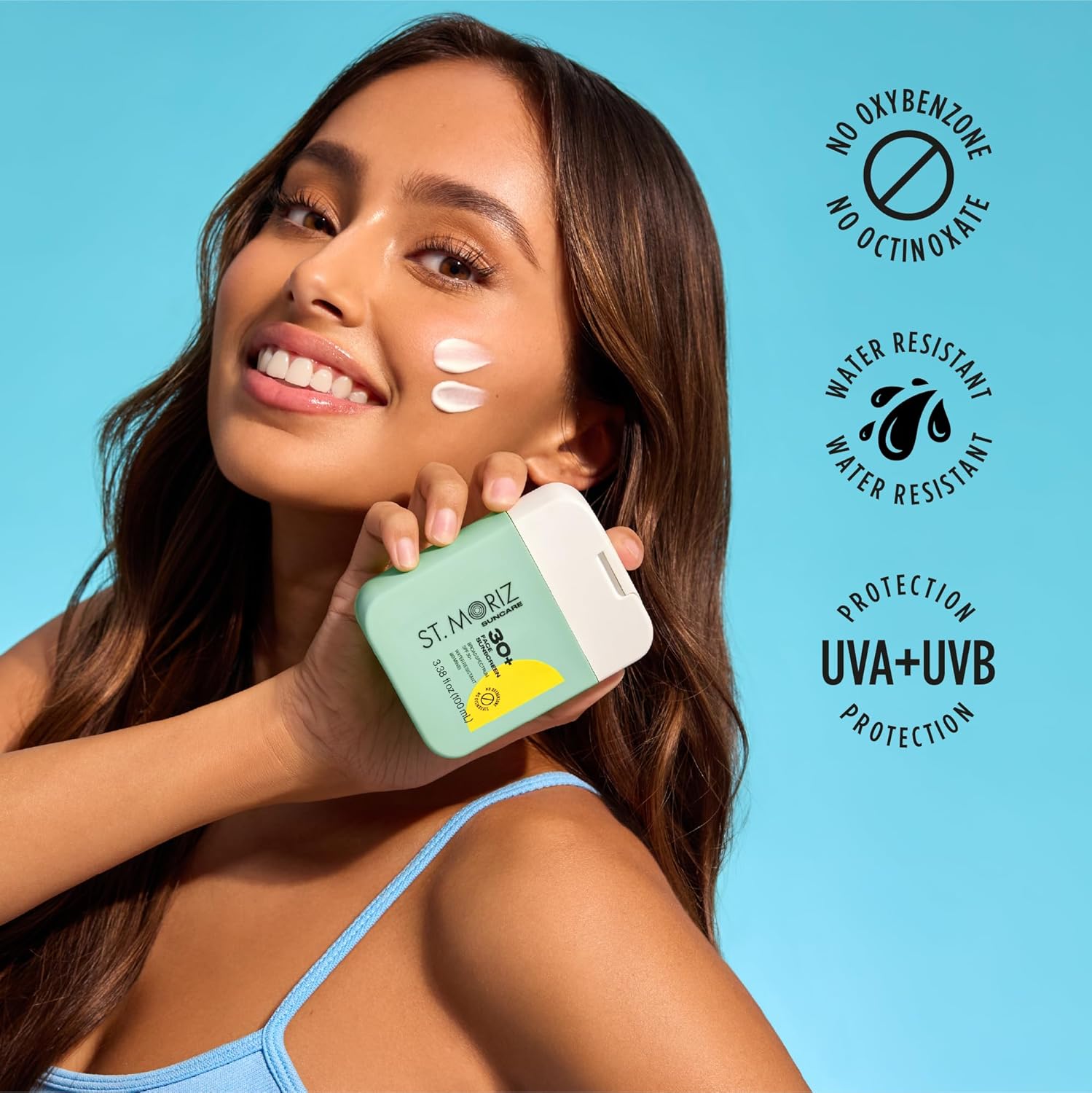 - ENVIRONMENTALLY CONSCIOUS: Contains no oxybenzone and no octinoxate. Like the full St. Moriz range, the St. Moriz Suncare SPF 30+ Face Sunscreen is dermatologically tested and approved, plus, it's 100% vegan & cruelty-free certified.