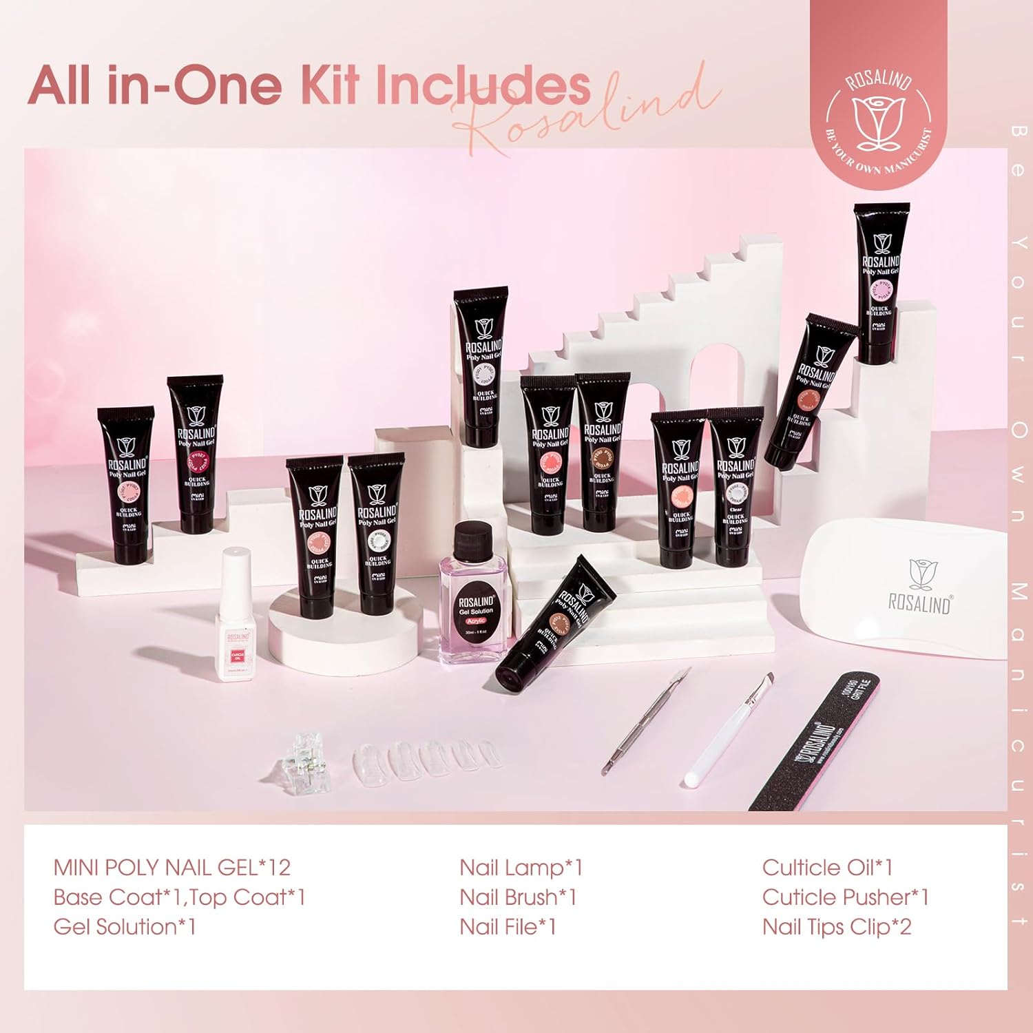 - FAST& Convenient: ROSALIND nail extensions gel kit is a multipurpose object that can be used for the acrylic nail enhancement of natural nails, but also for nail carving, sculpting nails, French nails, 3D nail design decoration, etc.ROSALIND poly nail gel kit is stronger, and more flexible. The poly nail gel kit with UV nail lamp makes your nails look charming and neat