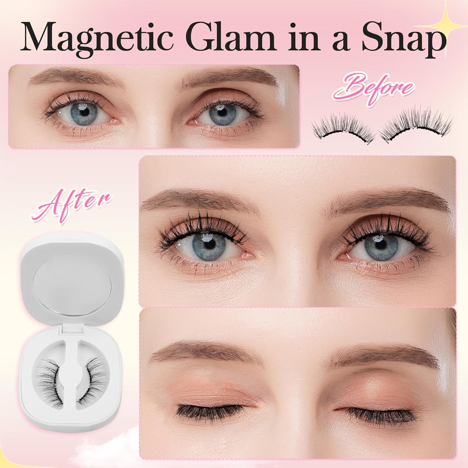 • 【Zero Glue, Zero Hassle】Skip the messy glue and harsh removers! These magnetic eyelashes offer a worry-free beauty experience that’s gentle and safe with every use, perfect for sensitive eyes and delicate lashes