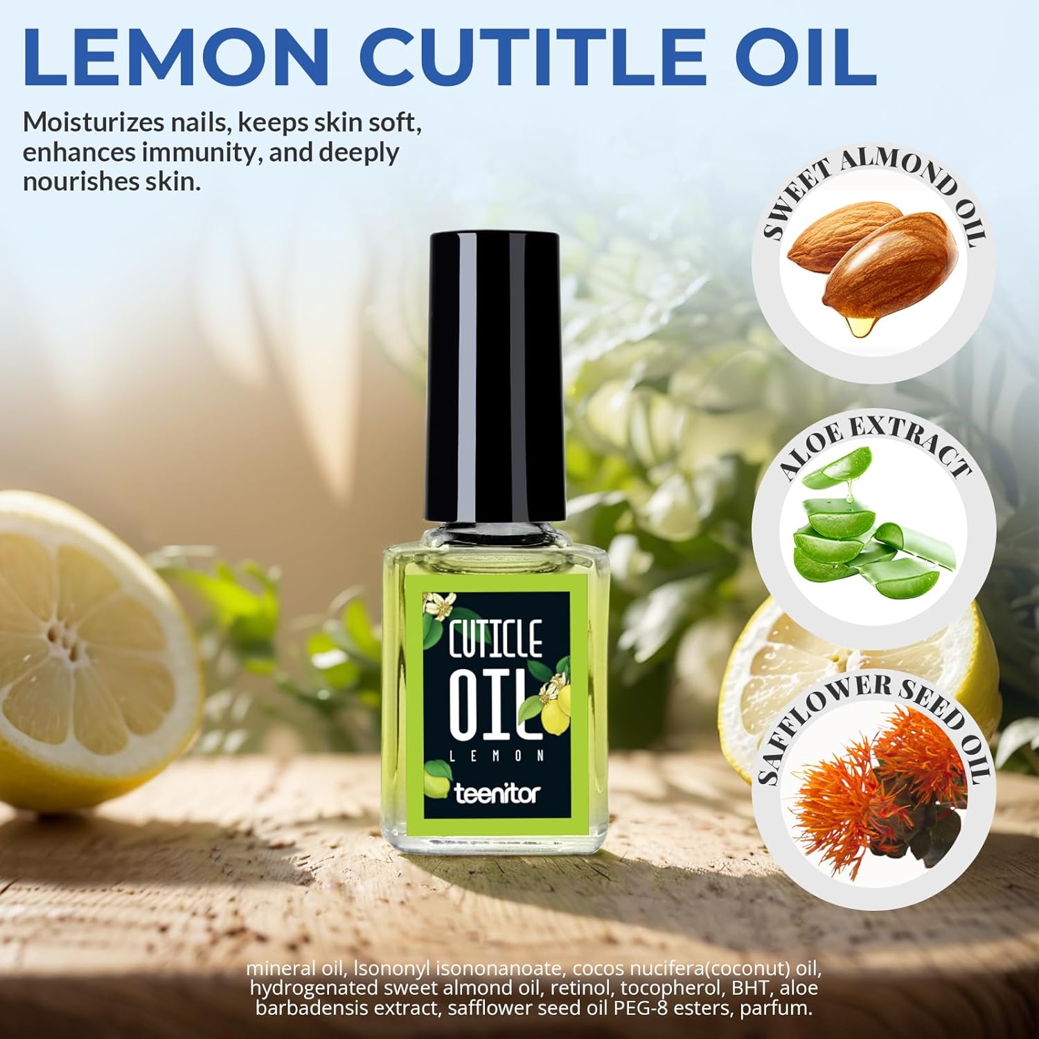 - Lemon Cuticle Oil: Apply cuticle oil before and after using nail remover bowl to protect your hands and moisturize your nails. Natural lemon cuticle oil, rich in oils and multivitamins. Can quench dry cuticles. Sweet almond oil provide antioxidant protection. The Safflower Oil is reputed to enhance skin's texture, tone protects and nourishes dry or cracked cuticles, nails and skin, leaving your cuticles and nails looking shiny and lustrous