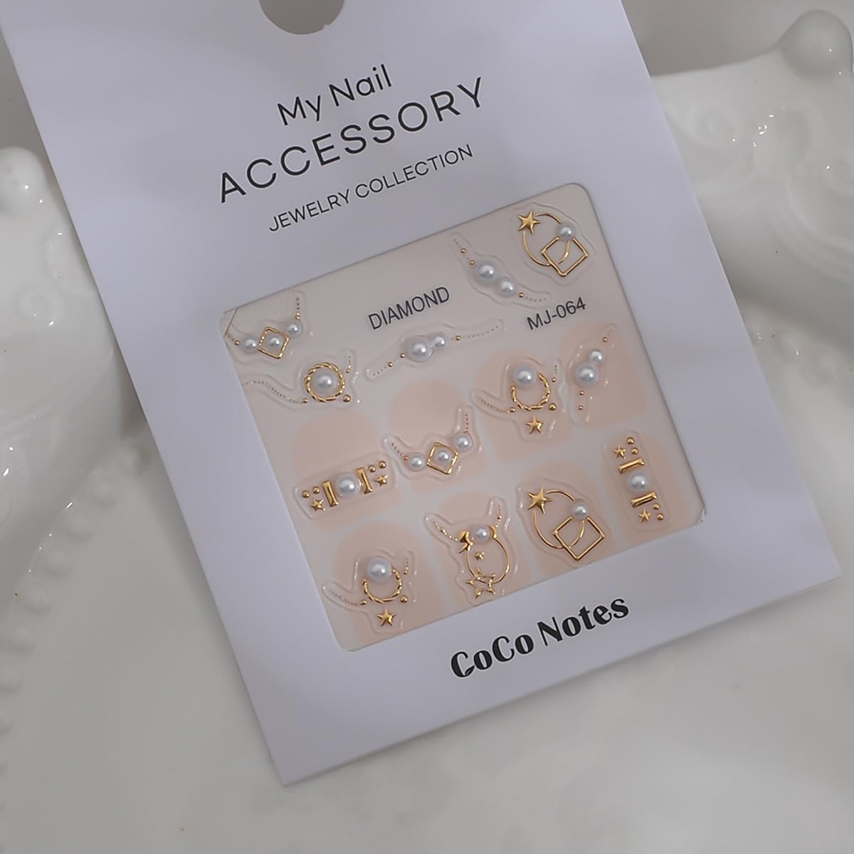 - Gold & Pearl Design: Elevate your nail art with our nail art stickers featuring white pearl and gold star.The gold-trimmed borders add a touch a of elegance,perfect for creating elegant nail art