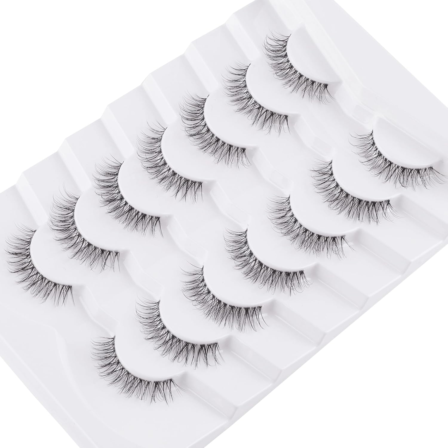 - VEGAN & REUSABLE: 7 pairs wispy lashes pack. The fake eyelashes use ultra-light faux mink fibers, cruelty-free, skin friendly. Bring pretty lashes extension look without damaging your own eyelashes, suit for DAY-TO-DAY use, party and so on