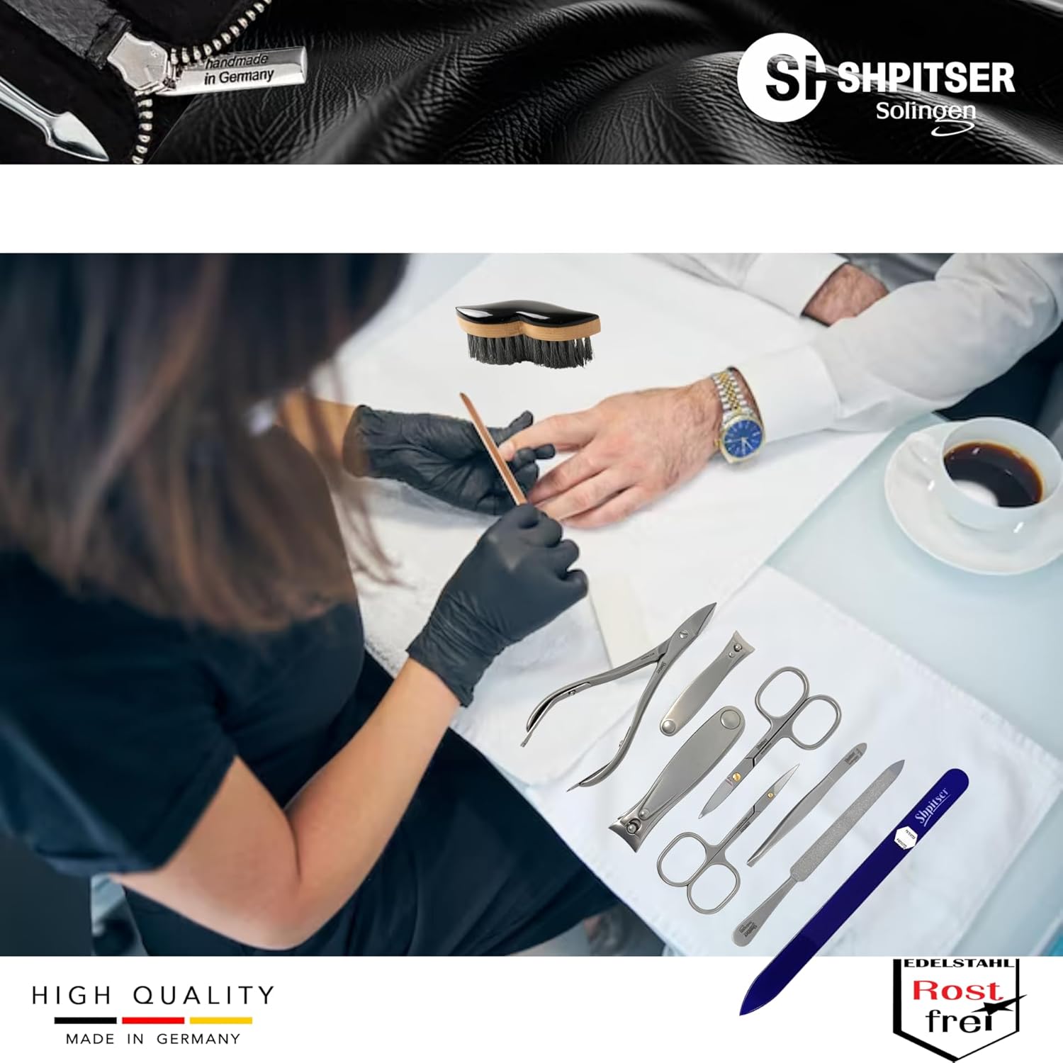 - GUARANTEED FOR LIFE β Shpitser manicure instruments are securely housed in premium-quality sets, offering optimal protection for these precision tools. Crafted from the finest leather with excellent workmanship, they ensure durability and a lifetime of reliable use.