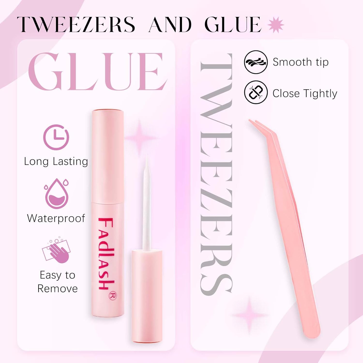 FADLASH False Eyelashes Kit Natural Cat Eye Lashes with Thin Band Wear Comfortable Black Fake Lashes 10 Pairs Lash Applicator Tool at Home, LZ209
