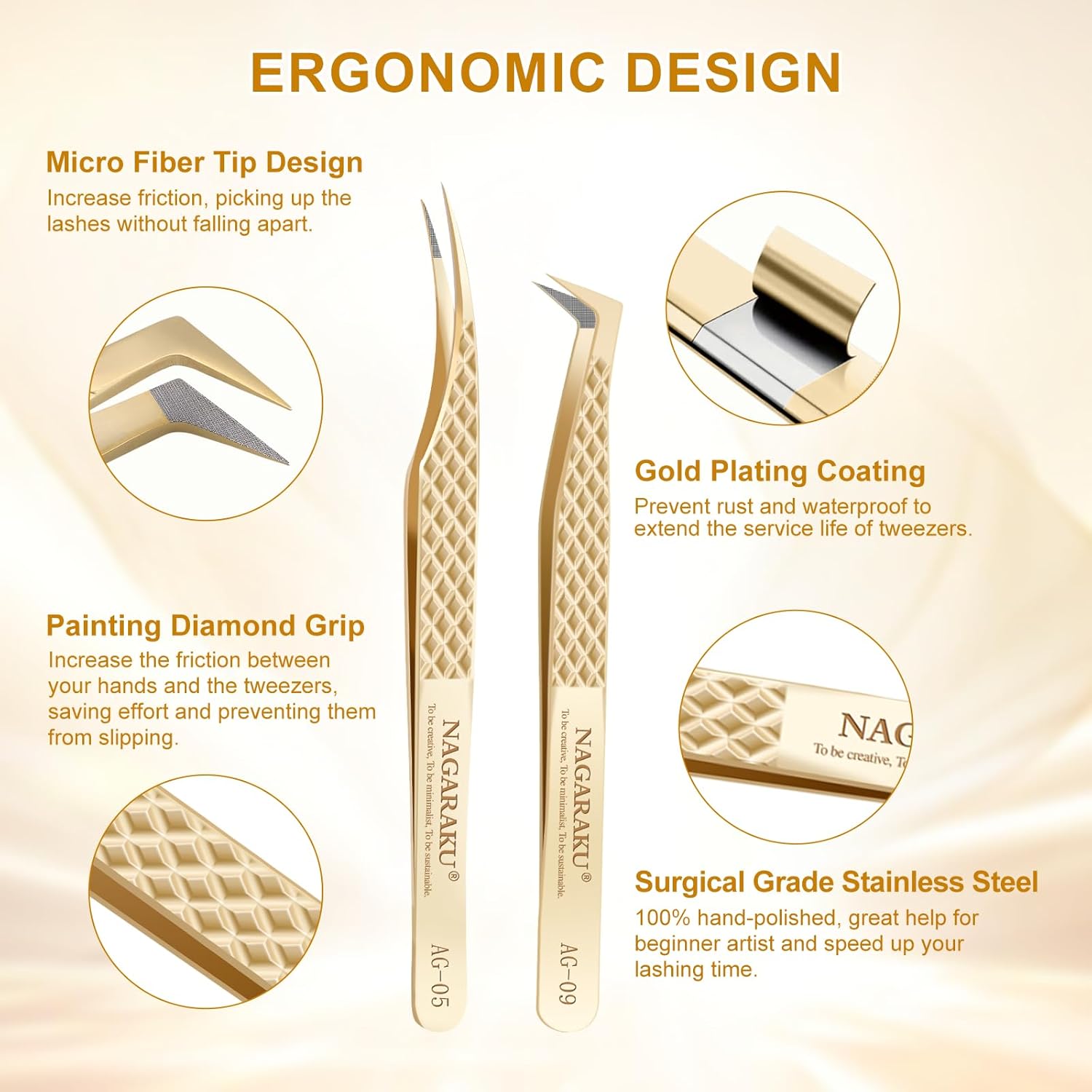- Ergonomic: Each fiber tip eyelash tweezer is sharpened by hand for precise use. Precise workmanship, smooth lines, anti-slip handle, moderate weight, comfortable operation, does not cause hand fatigue even under long-term use