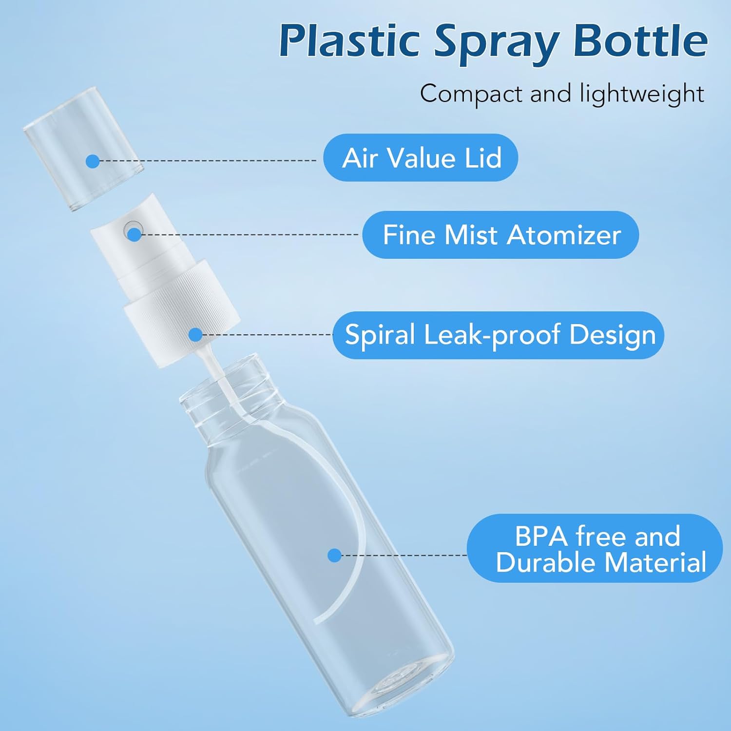 Spray Bottles, 2oz/50ml, 3.4oz/100ml Clear Empty Fine Mist Plastic Mini Travel Bottle Set, Small Refillable Liquid Containers with 2pcs Funnels and 24pcs Labels (4 Pack)