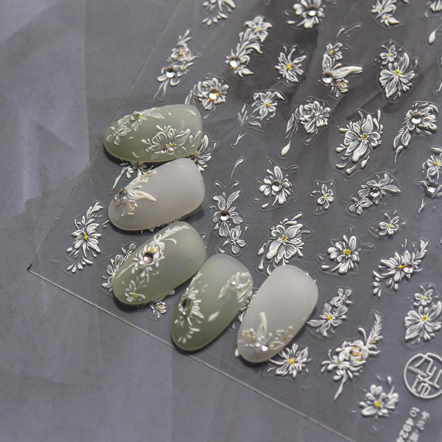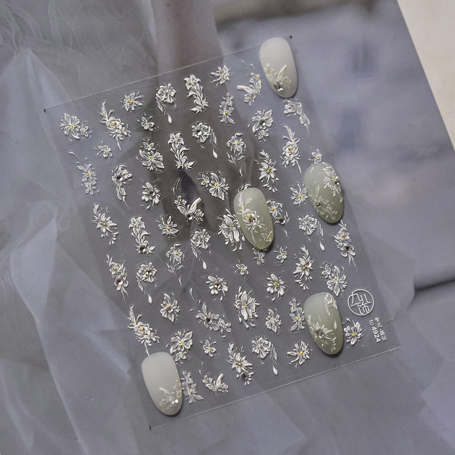 - Flower Nail Decals: 1 sheets of 5D Embossed white flower nail stickers give people an intuitive and advanced exquisite feeling. spring summer design nail decals are perfect for decorations for your false nails.that will make your fake nails more realistic and interesting!