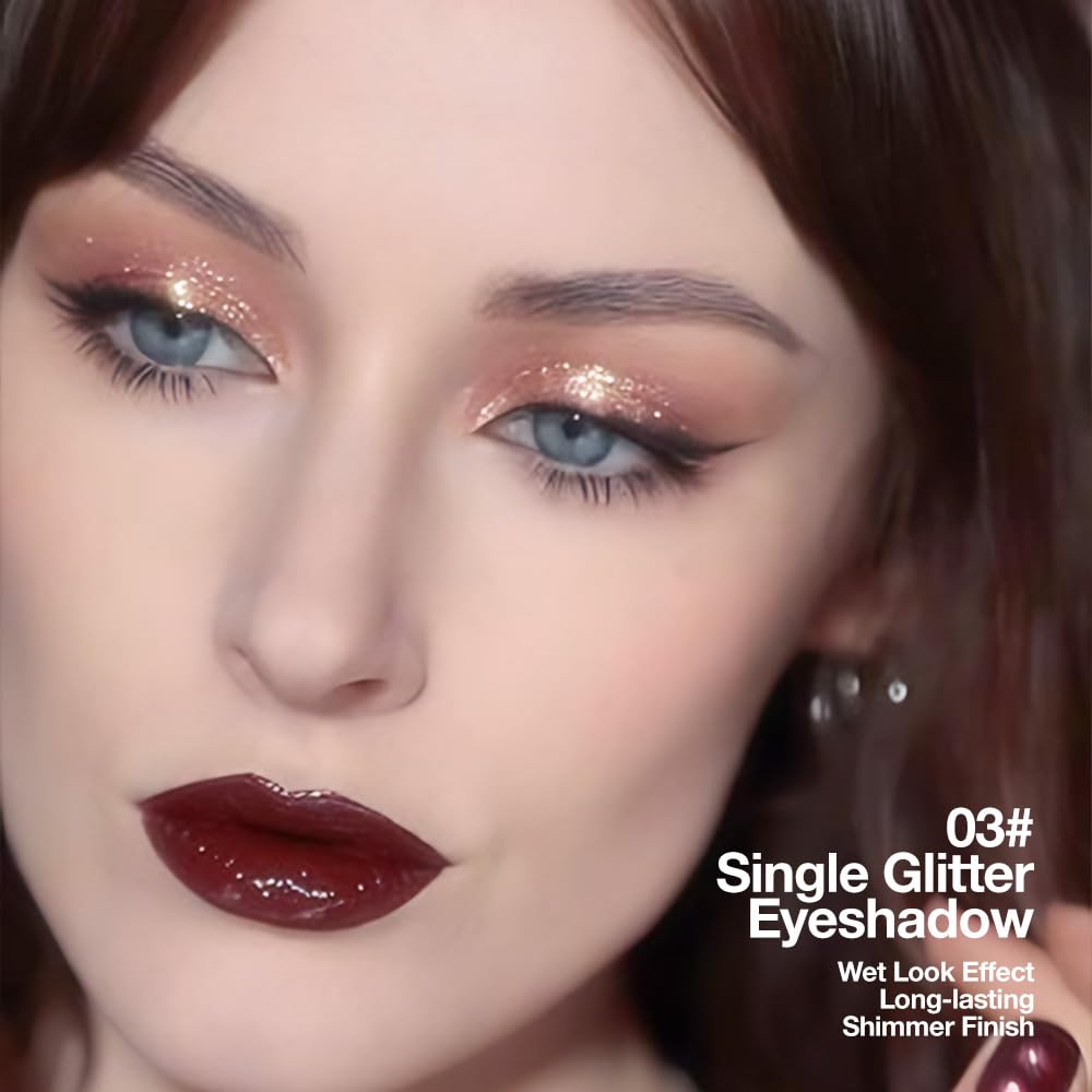 Glitter Shimmer Sparkle Eye Shadow Palette Makeup for Women, Shimmer Rose Gold Glitter Metallic Holographic Iridescent Cream Iridescent Single Monochrome Eyeshadow Makeup