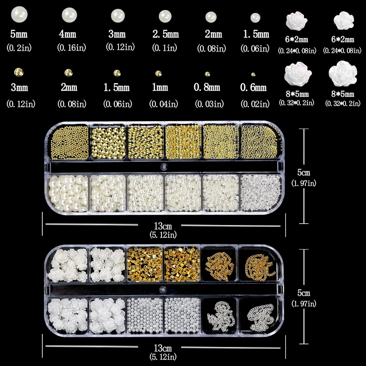 Nail Art Charms with Rhinestones Glue Gel White Flatback Pearls Luxurious Nail Charms Supplies Accessories Gold Silver Chains Nails Gems Jewelry Pearls for Women Nails Design