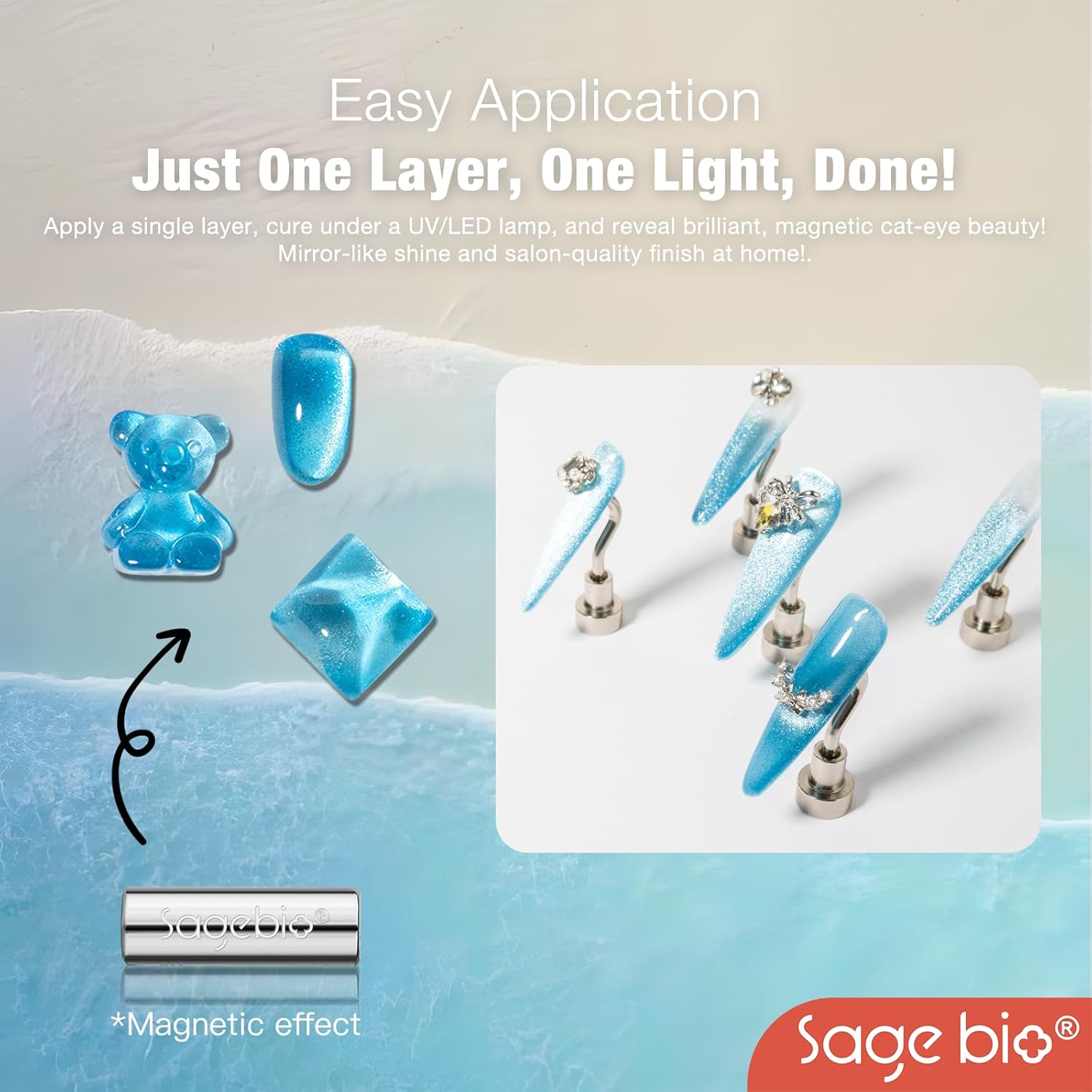 - Multifunctional Formula: SAGEBIOโs Cat Eye Gel Nail Polish combines both the base and color in one easy-to-use formula. No need for additional base or top coats, streamlining your nail art routine.