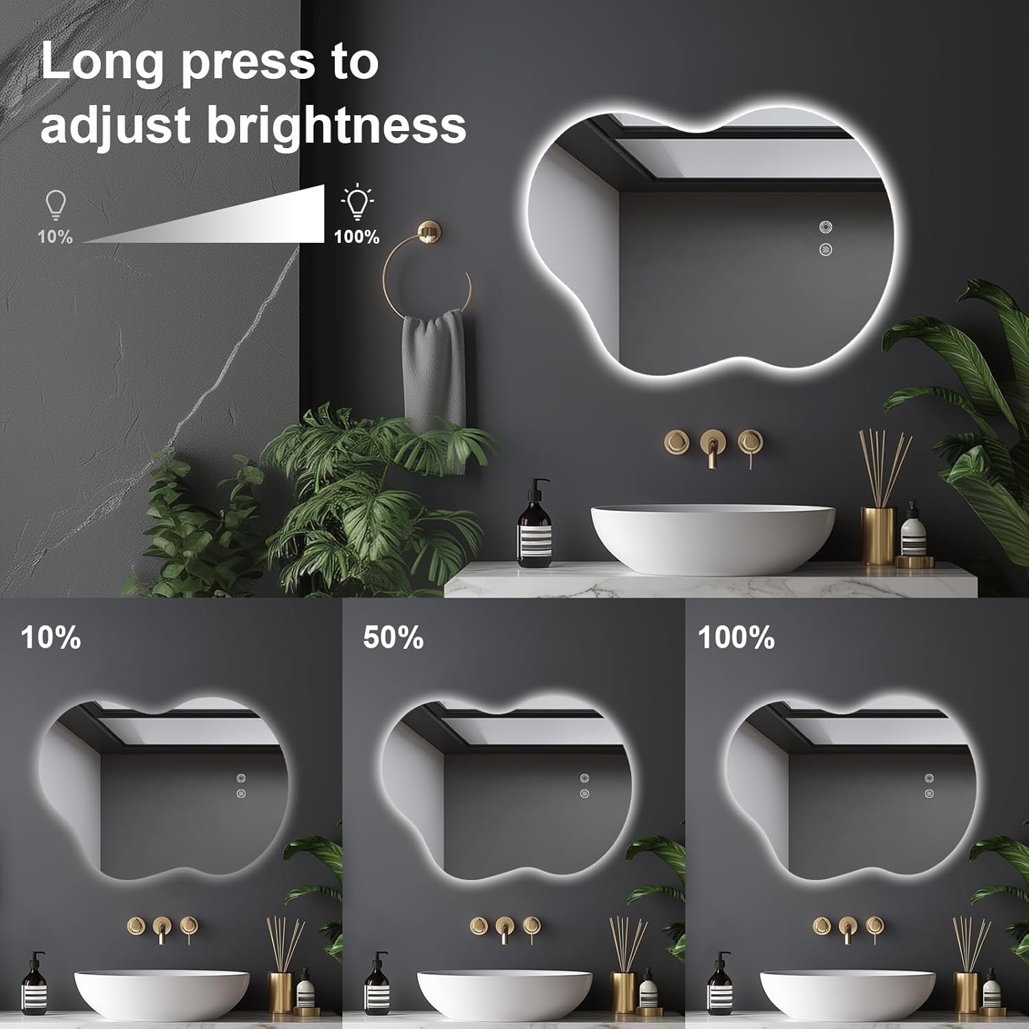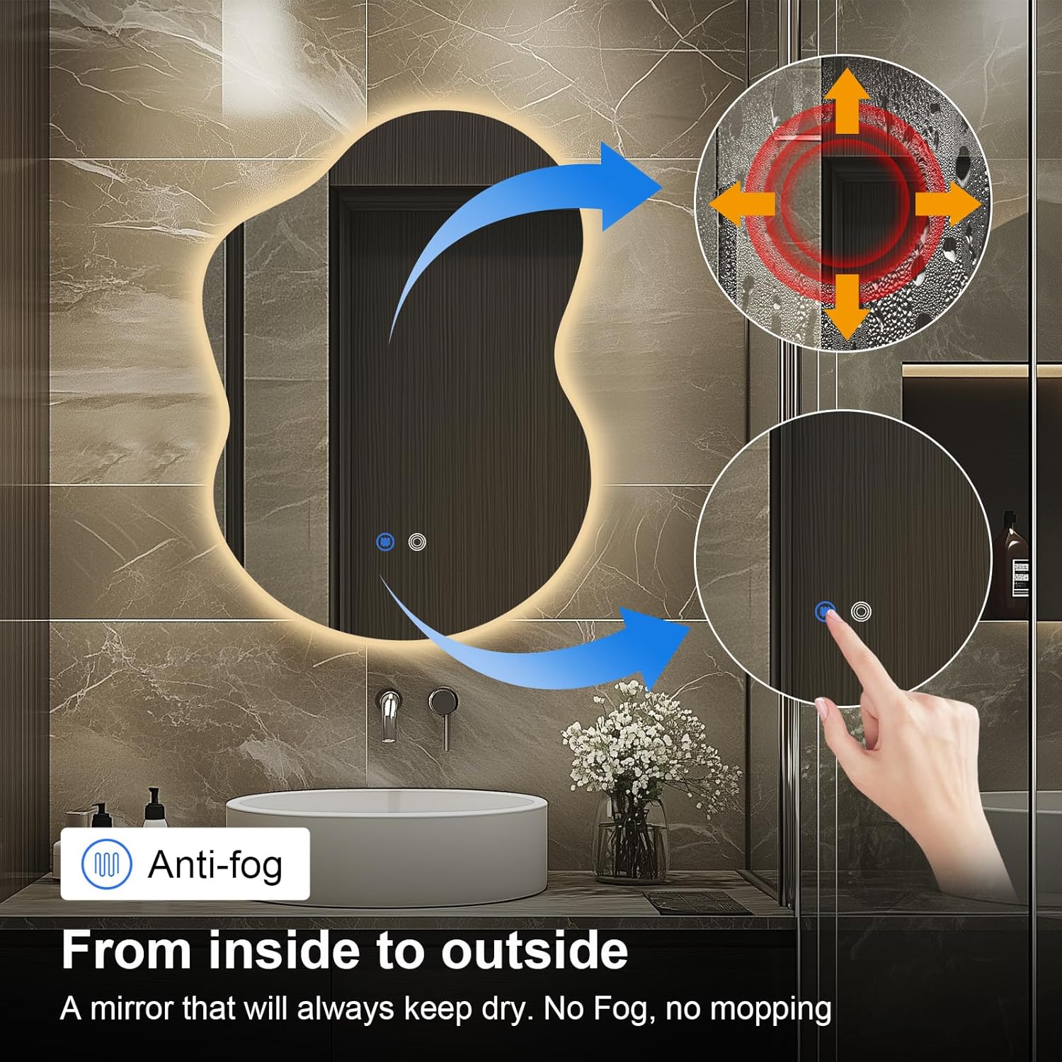 30"x22" Irregular LED Bathroom Mirror with Front & Backlight, Anti-Fog, Dimmable, 3 Color Modes, Wall-Mounted [Horizontal/Vertical]