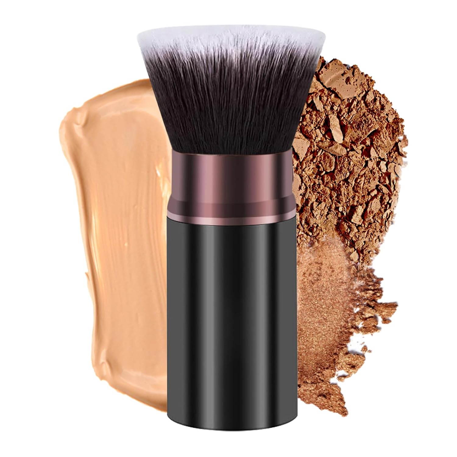 Retractable Makeup Brush, Travel Kabuki Powder Foundation Makeup Brush Face Blush Brushes for Blending Liquid, Flawless Cosmetics, Bronzer, Buffing, Sunscreen,