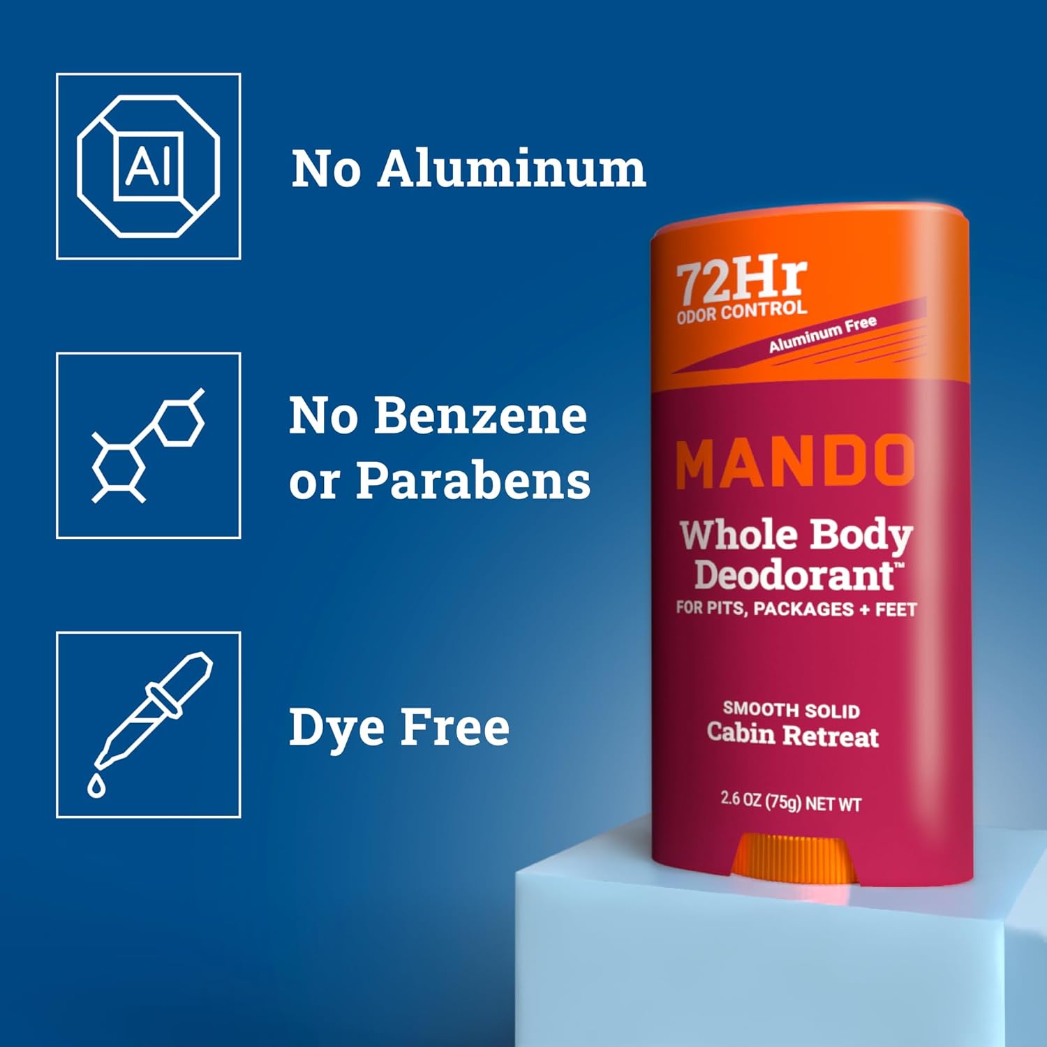 Mando Whole Body Deodorant For Men - Smooth Solid Stick - 72 Hour Odor Control - Aluminum Free, Baking Soda Free, Skin Safe - 2.6 Ounce (Pack of 2) - Cabin Retreat Limited Edition Scent