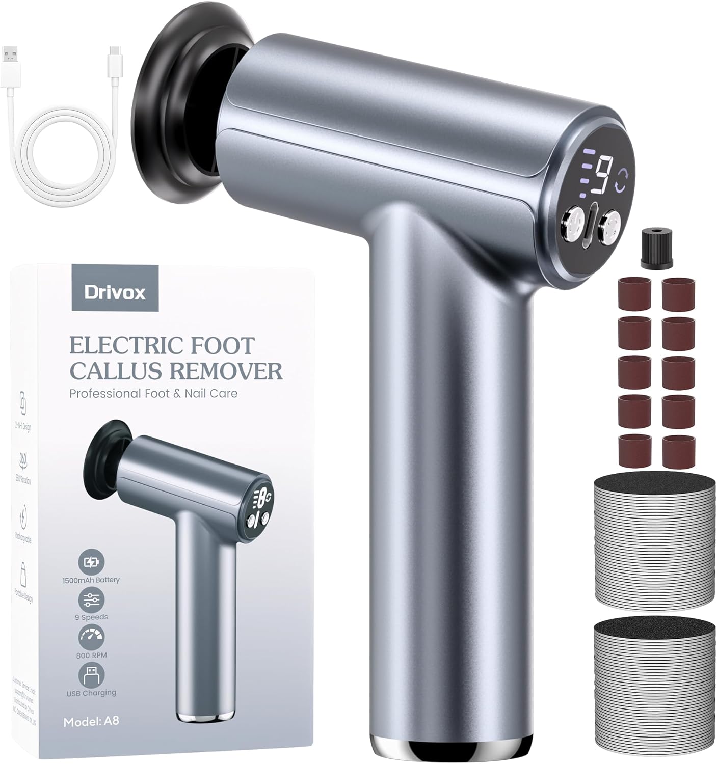 - 【Ergonomic Streamlined Design】Drivox Electric foot callus remover a contoured grip and optimized weight distribution for effortless handling, reducing fatigue during prolonged use. Perfect fit in your hand for enhanced comfort, better grip, and effortless control
