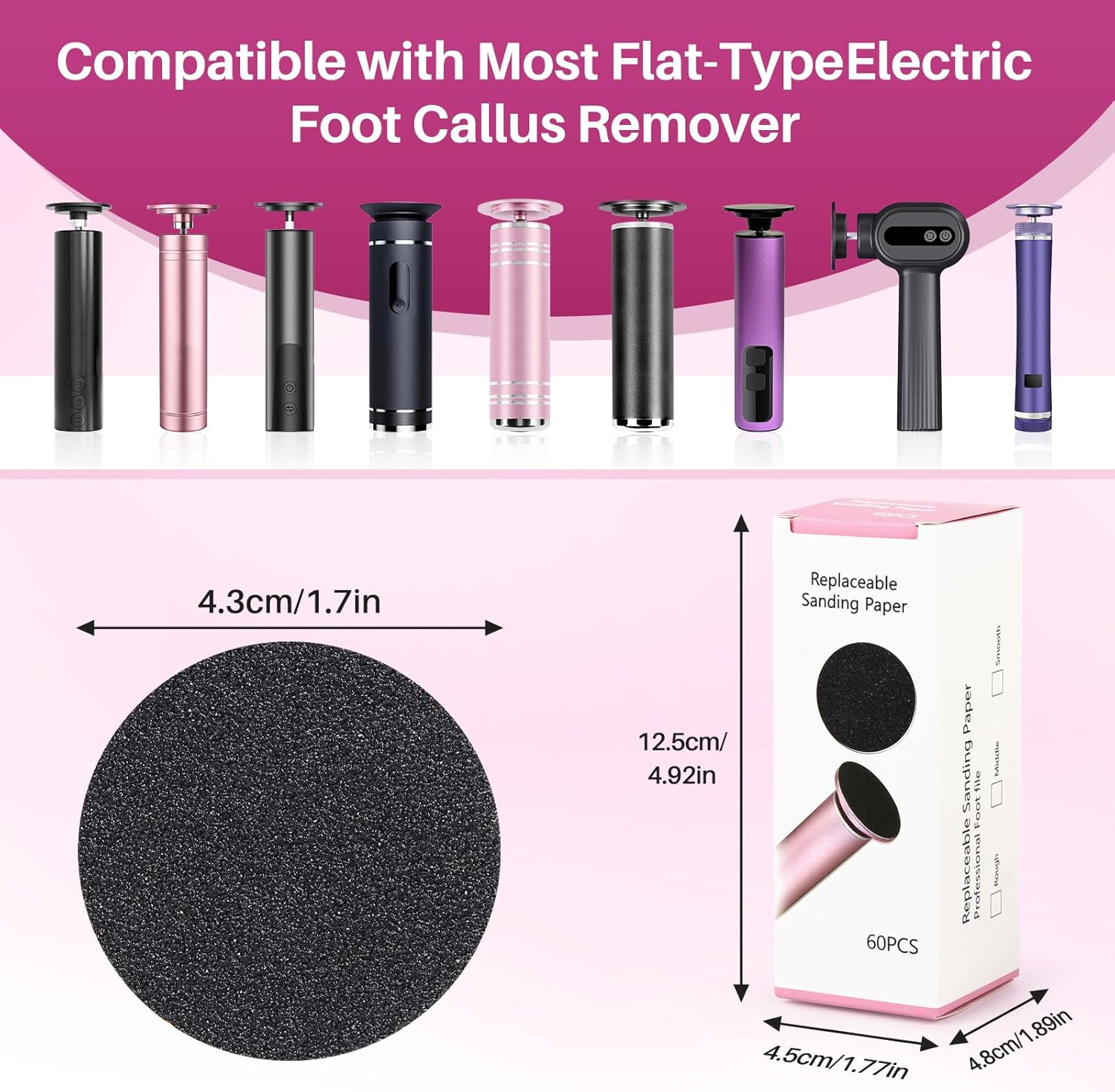 - 【Precision Fit Design】"Exclusively engineered for 1.69" electric foot smoothers, these exfoliating discs deliver seamless compatibility with most rotary foot care devices. The laser-cut edges ensure vibration-free operation for salon-grade precision."