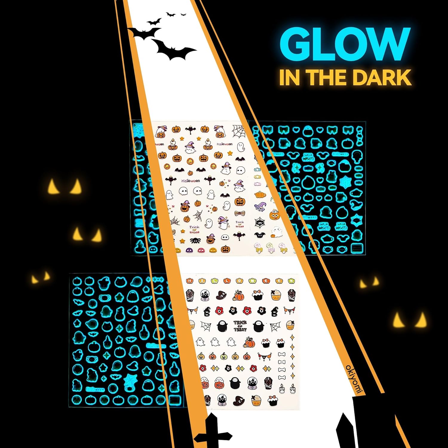- GLOW-IN-THE-DARK: Shine a bright light on the nail decals for five minutes and marvel as they emit a gentle glow, casting a soft, spellbinding light thatβs perfect for trick-or-treating or haunted fun.
