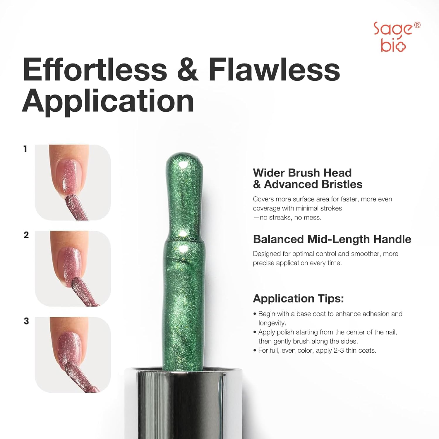 - Single Bottle, Salon Size: Includes one 15ml/0.5oz bottle of SAGEBIO Cat Eye Gel Polish. Use with magnet and different base colors to create unique shimmering nail effects. Customize your style from soft to bold.