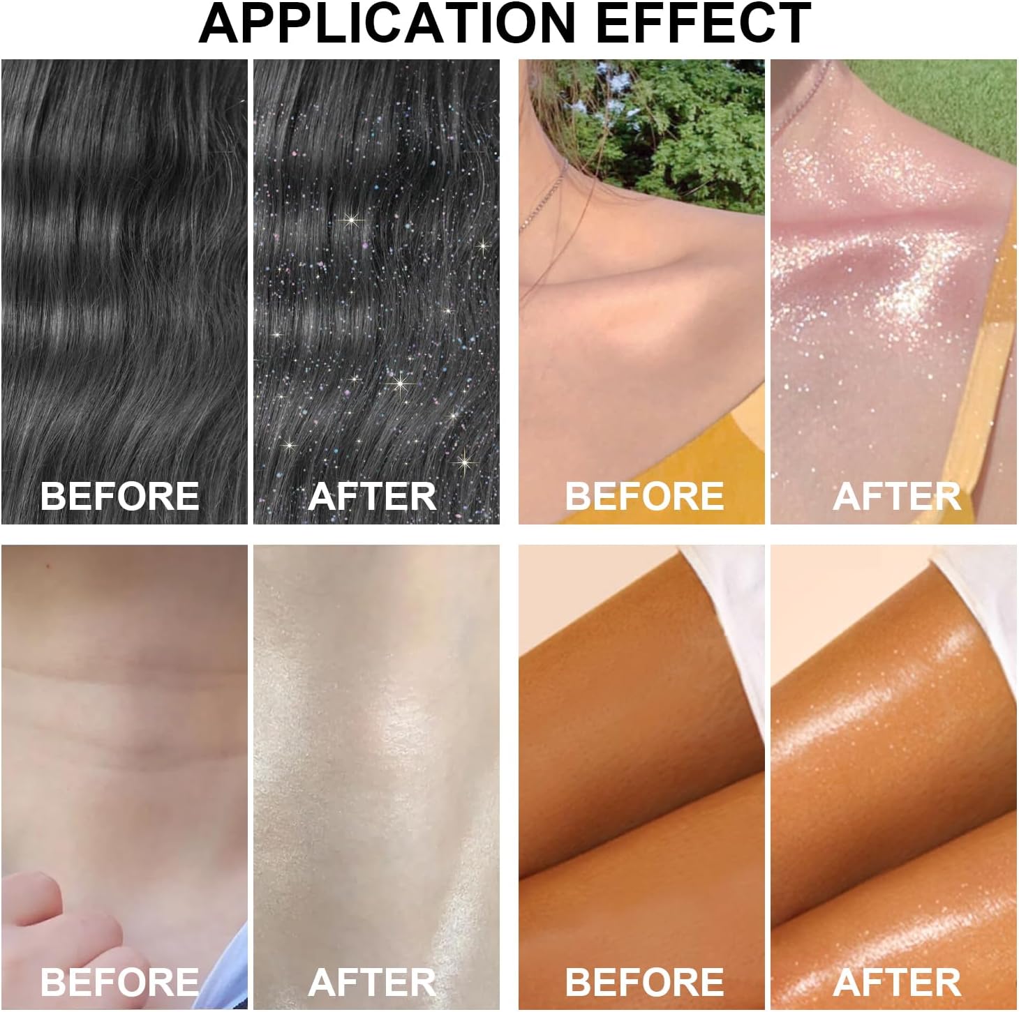 - Multi-uses - Use alone for highlighter to brighten skin, or add with your favorite liquid foundation, skincare, gel, hairspray, luminous oil or glitter glue for unique face body makeup, under eye tears, glitter braids, lip gloss and nail polish!