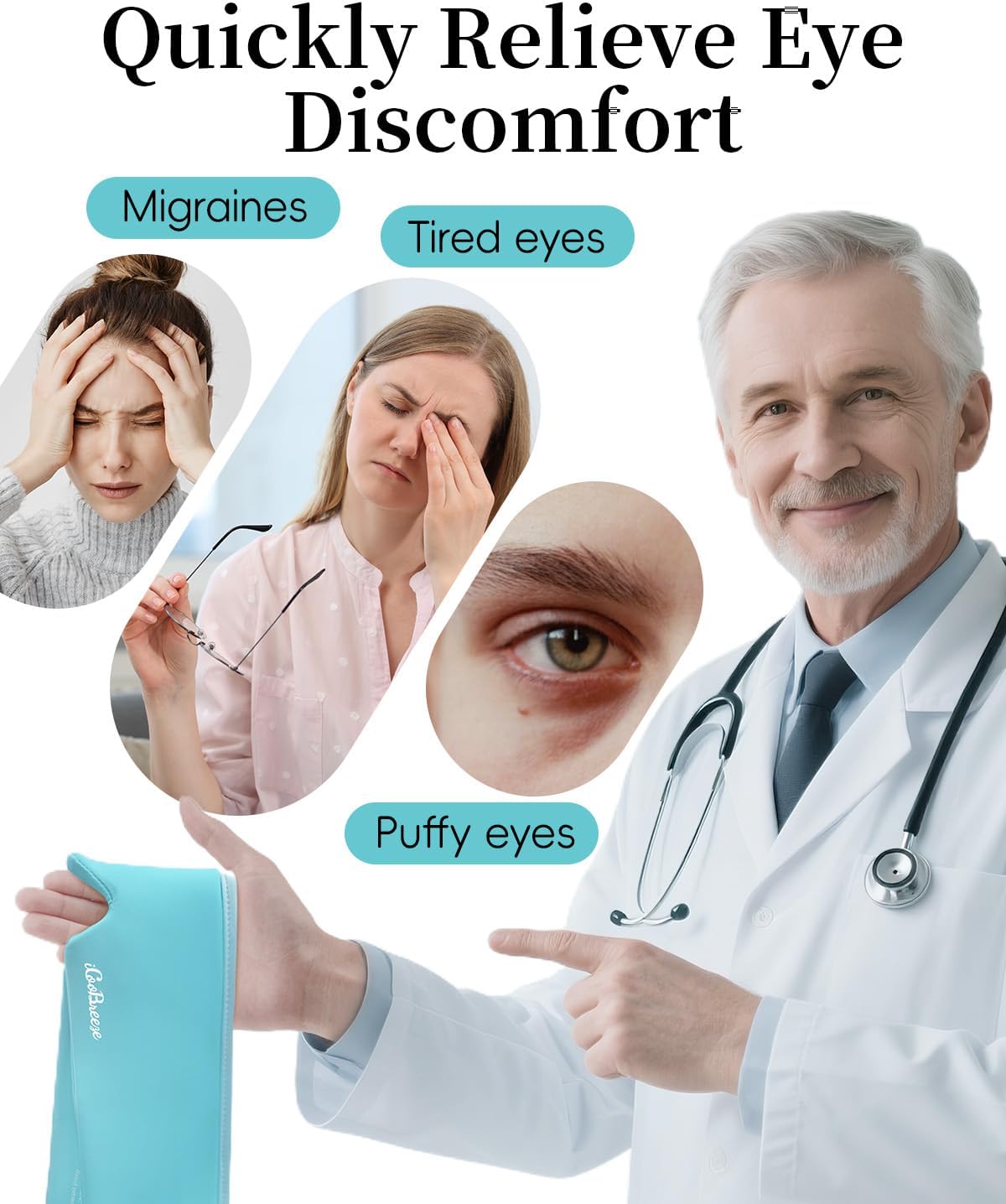 - ★WHY CHOOSE US?The iCooBreeze cooling eye mask is crafted with ultra-thick, non-toxic gel. The gel is evenly distributed, soft, and flexible—it never hardens or leaks, even after freezing. It stays cool for extended periods and is fully reusable.