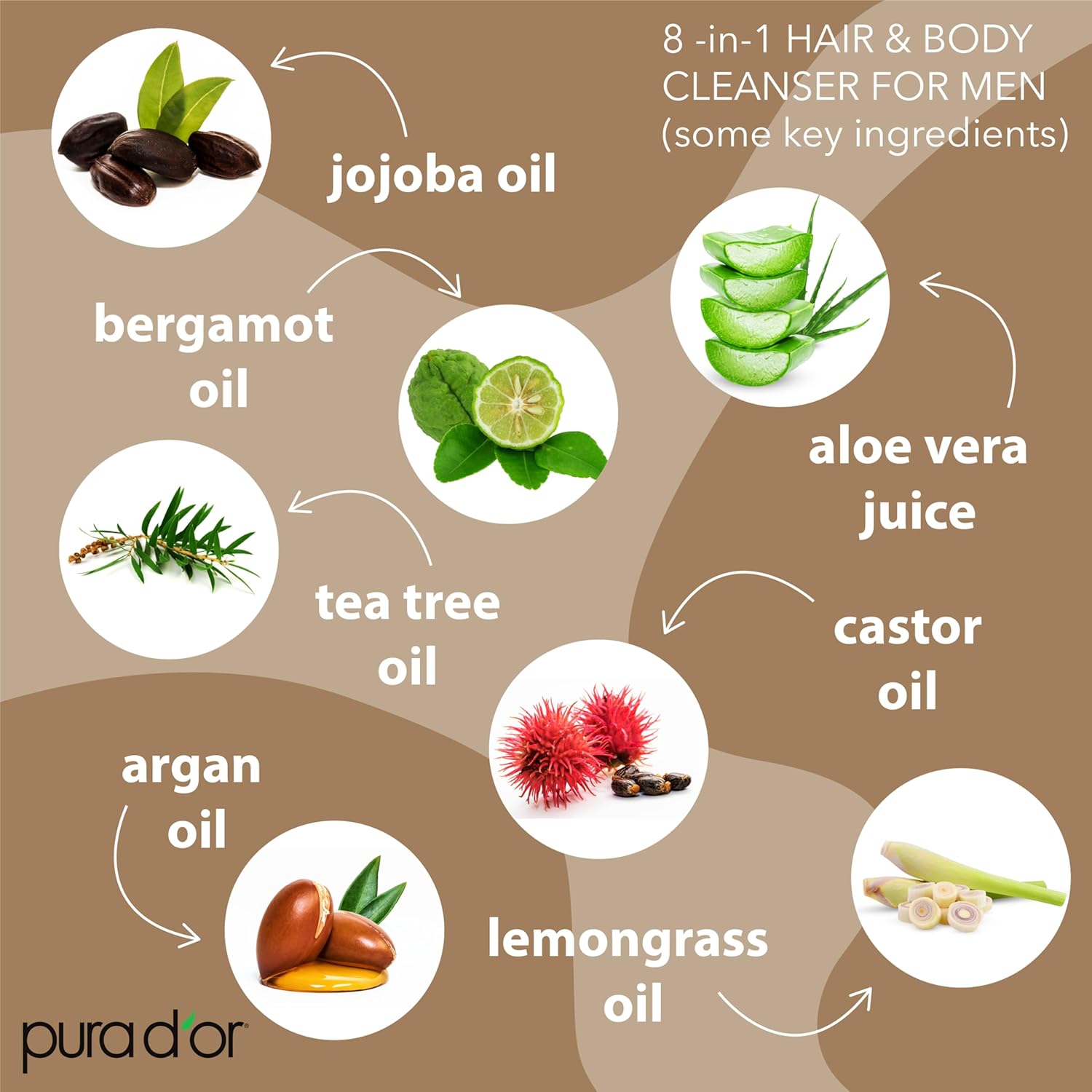 PURA D'OR 24 Oz 8-in-1 Hair & Body Cleanser For Men – Sulfate-Free, Multi-Use Wash for Hair, Face, Beard & Body, with Organic Aloe Vera, Cedarwood & Lemongrass, Energizing & Deodorizing Formula