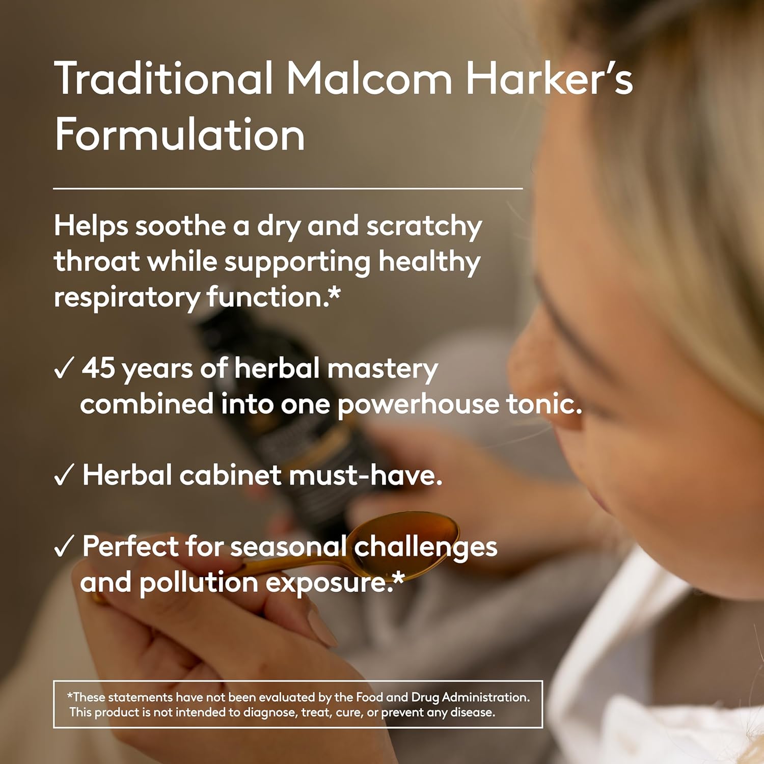 - Unique Formulation β Malcolm Harkerβs original, time-tested formulation combines botanicals traditionally used to support lung and bronchial wellness including, elecampane, ginger, white horehound, cayenne pepper & licorice.